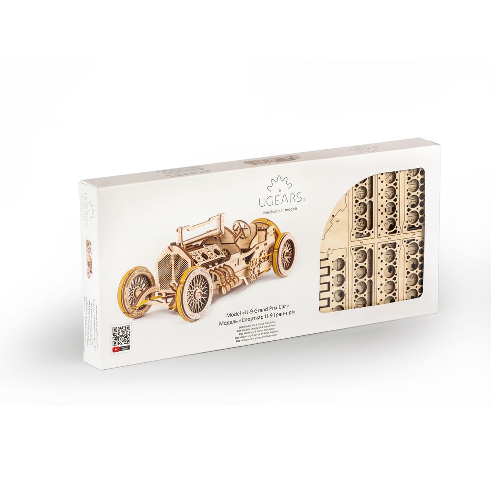 - Vintage Grand Prix Car Model Kit: Build your own classic Ugears U-9 Grand Prix racing car, inspired by early Formula One vehicles. A perfect DIY project for adults and motorsport enthusiasts.