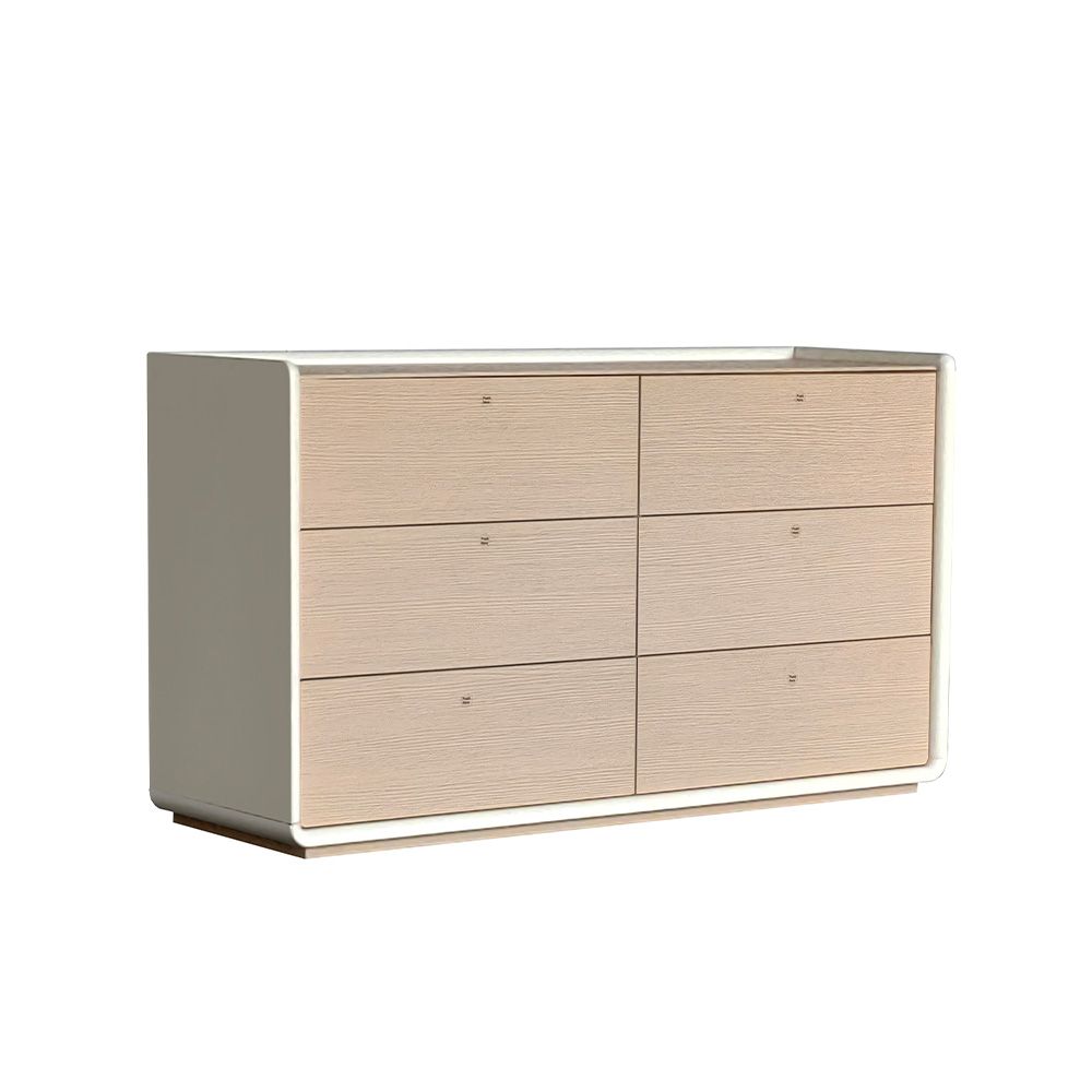 V2 Brita 6 Drawer Dresser Mirror with Storage-Beige/White Oak