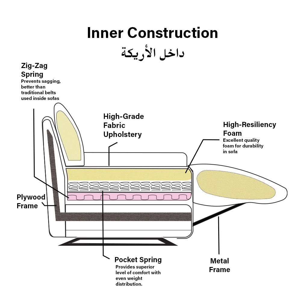 Warranty Covered - Wooden structure, Frame, Manual Mechanism, Recliner Lever, Electric Mechanism, Sitting foam, Spring, Sofa bed fitting, Sofa bed Wheels, Fibre Cushions / Pillows & Remotes are all included in the warranty.