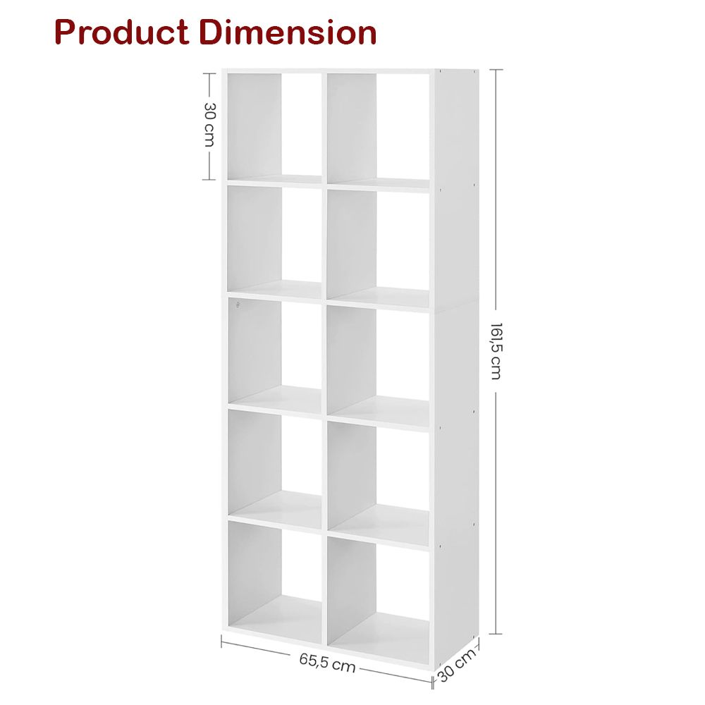 VASAGLE 10 Cube Storage Bookcase - Room Divider Shelf and Organizer for Living Room, Office, Bedroom, or Study - White