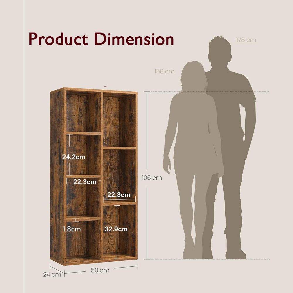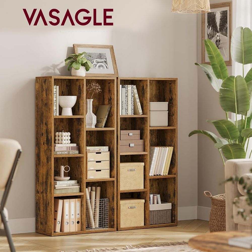 VASAGLE 7 Compartment Bookcase Open Shelf with 7 Storage Cubes, Wooden Display Storage Rack for Living Room, Home Office, Study and Bedroom, Modern Space Saving Book Storage Unit - Dark Hunton Oak