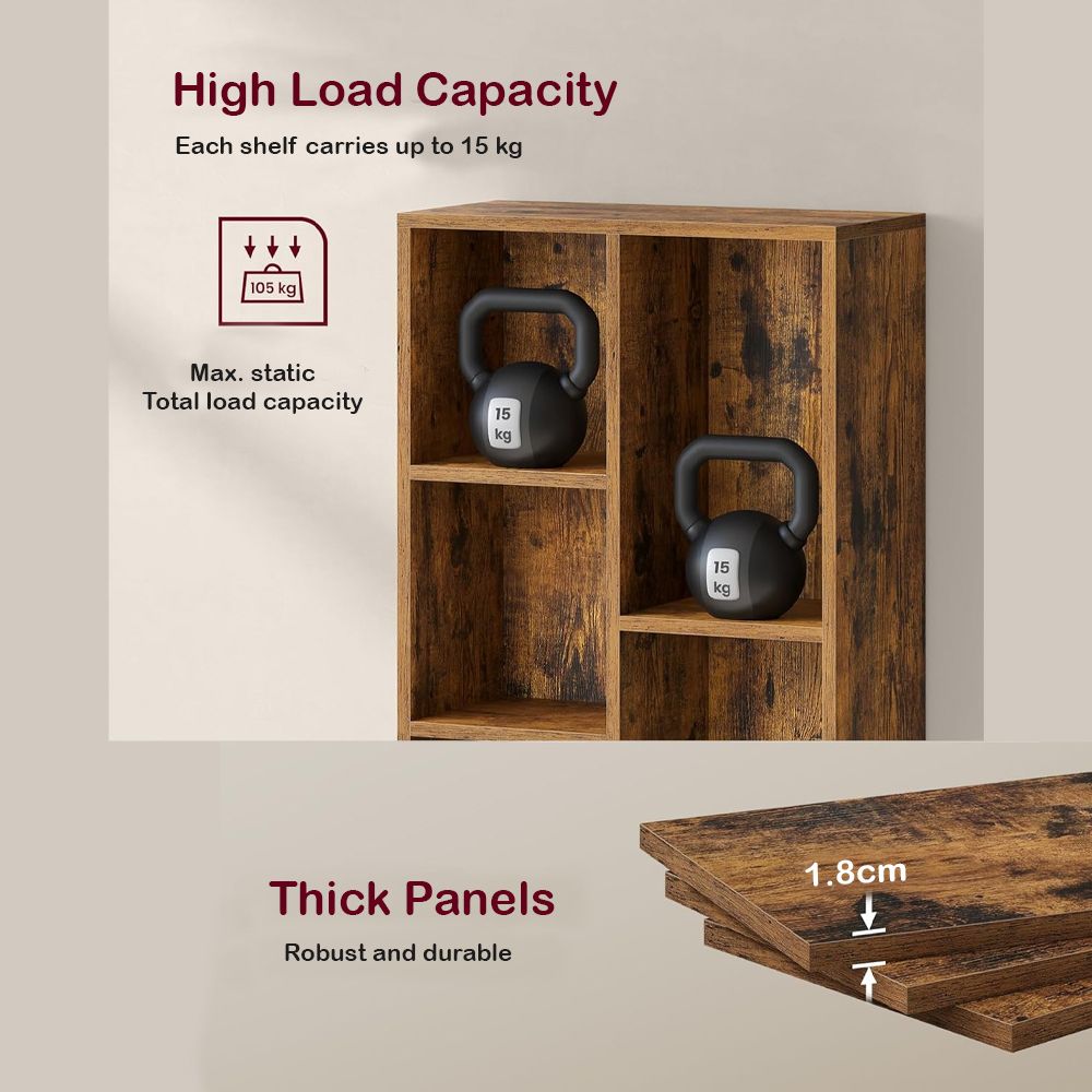 This 7-compartment bookcase is designed to maximize storage while fitting easily into small rooms, apartments and offices. This can double as a bookshelf, a display rack, a storage organizer, or even a cube shelf for toys and accessories. Its versatile design makes it a practical addition to any room in your house.