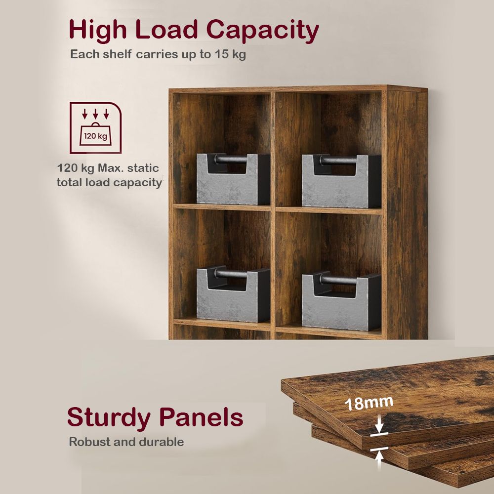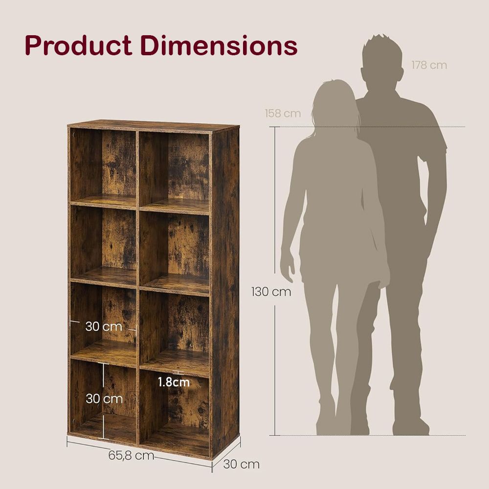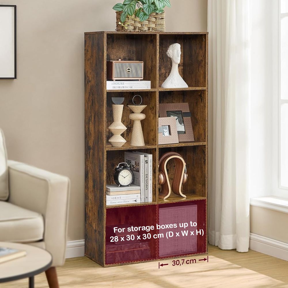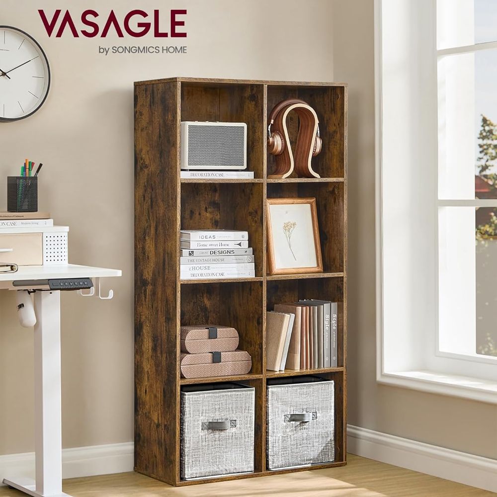 VASAGLE 8 Compartment Bookcase Open Shelf with 8 Storage Cubes, Wooden Display Storage Rack for Living Room, Home Office, Study and Bedroom, Modern Space Saving Book Storage Unit - Dark Hunton Oak