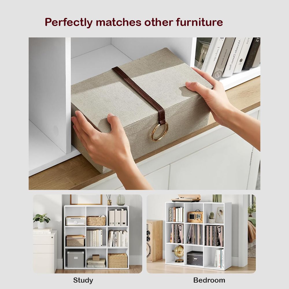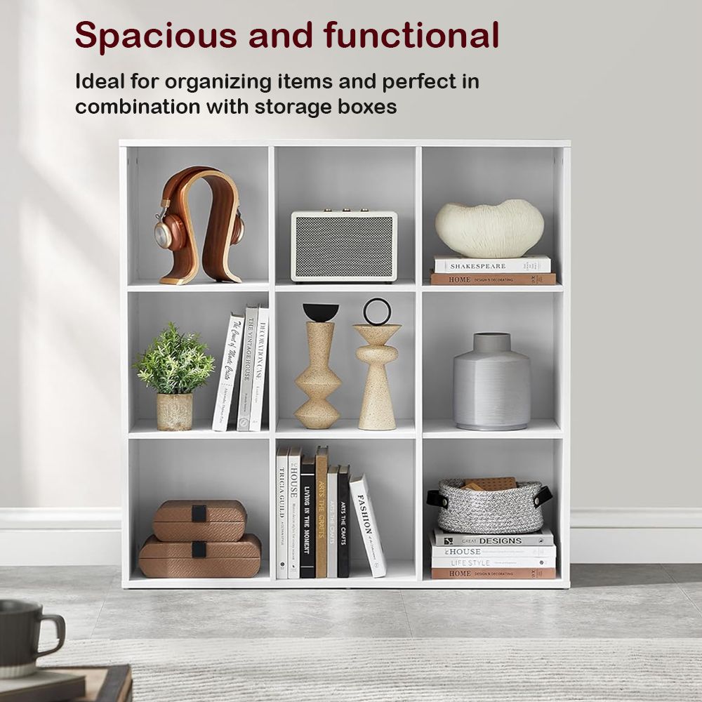 This 9-compartment bookcase is designed to maximize storage while fitting easily into small rooms, apartments and offices. This can double as a bookshelf, a display rack, a storage organizer, or even a cube shelf for toys and accessories. Its versatile design makes it a practical addition to any room in your house.