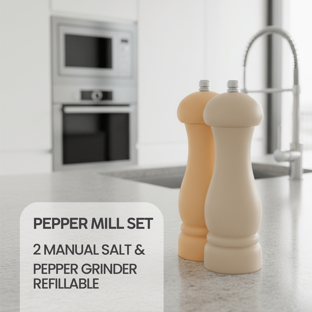 The product Healthy And Safe Non-Stick Enameled Cast Iron 7-Piece Dutch Oven Cookware Set With Gloves And 2-Piece Mills. Includes: 24Cm Dutch Oven Fry Pan, 18Cm, 21Cm, And 24Cm Dutch Ovens With Lids, Gloves, And 2-Piece Mills. - Teal images have props used for illustrative purposes. Product Color may vary slightly due to photographic lighting or your screen settings.