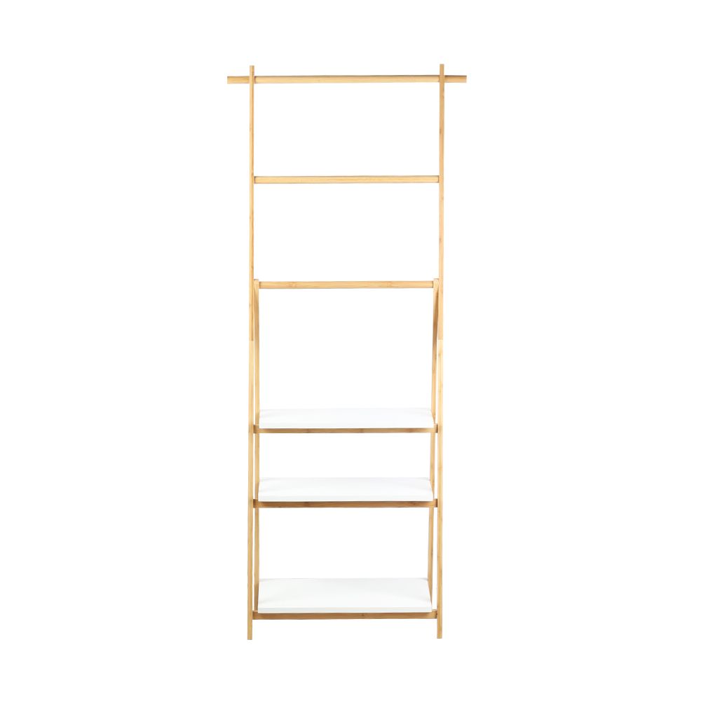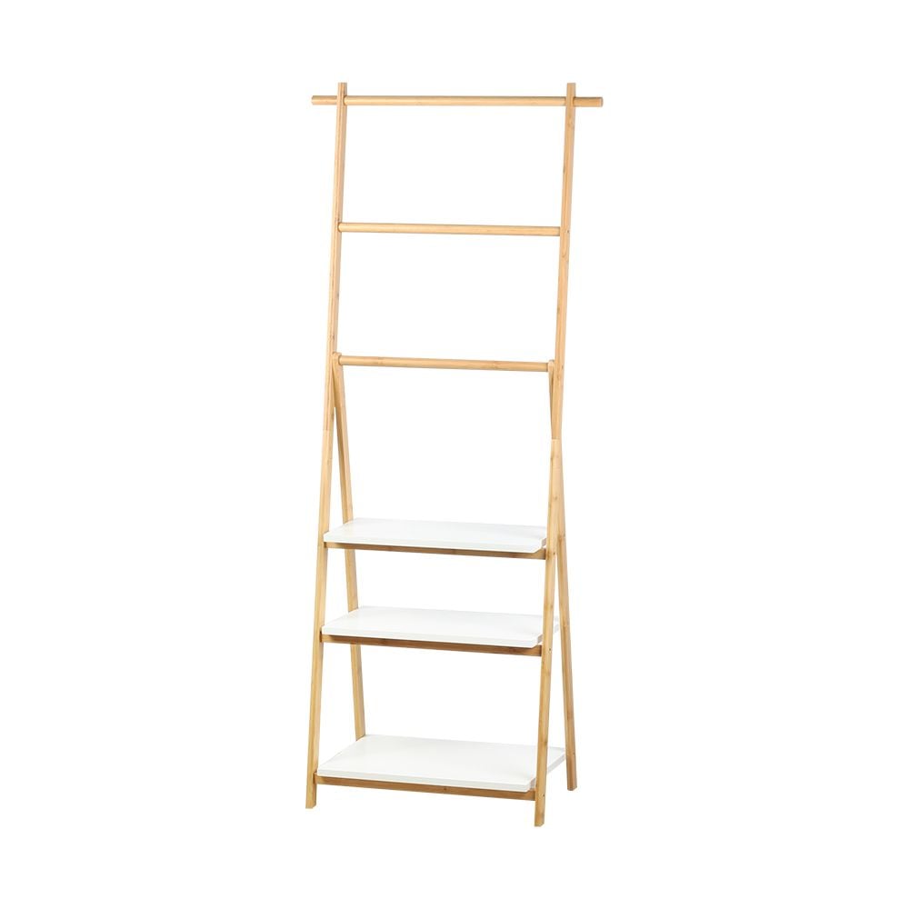 Add a modern and natural touch to your home with this bamboo ladder shelf. Designed with three sturdy white shelves and a leaning ladder-style frame, it’s perfect for displaying décor, plants, towels, or storage baskets. Its slim, space-saving design makes it ideal for bathrooms, bedrooms, or living areas.