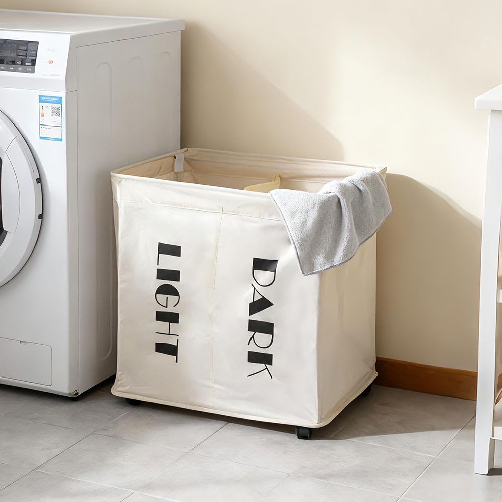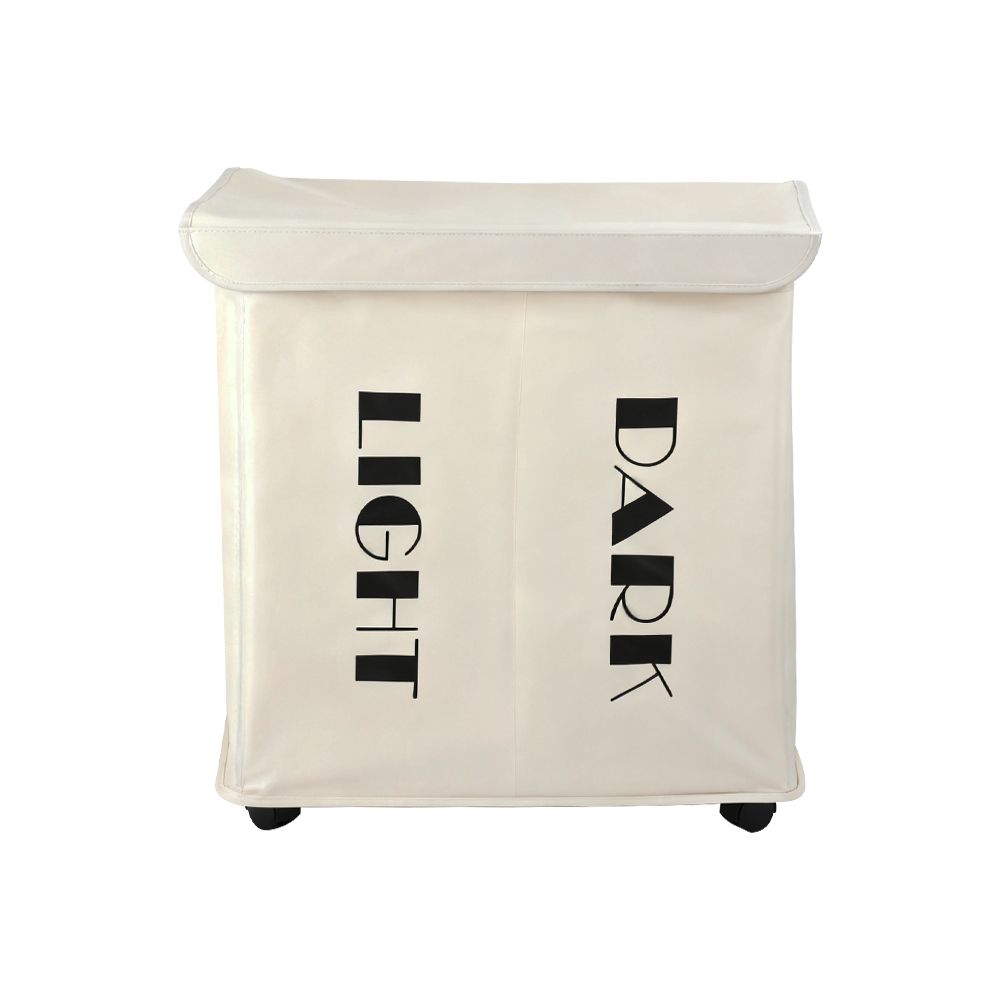 Keep your laundry organized effortlessly with this dual-section hamper featuring “Light” and “Dark” labels. Made from durable fabric with a sturdy foldable frame, it allows easy sorting while saving space. The neutral tones make it a perfect fit for modern homes and laundry rooms.