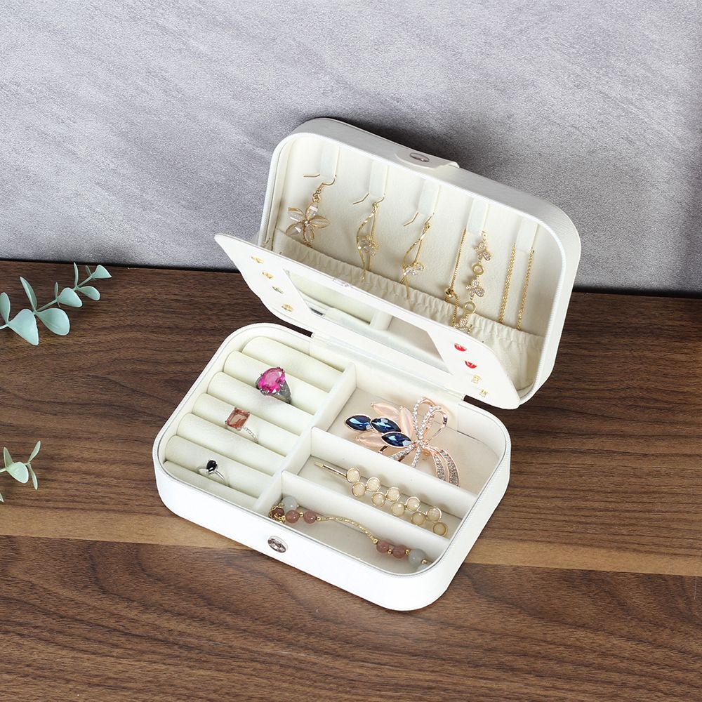 A chic and compact jewelry organizer designed for travel and daily use. Featuring an inner mirror, multiple compartments, and a secure zipper closure, it keeps your rings, earrings, necklaces, and bracelets neatly arranged and tangle-free. Perfect for both home storage and on-the-go organization.