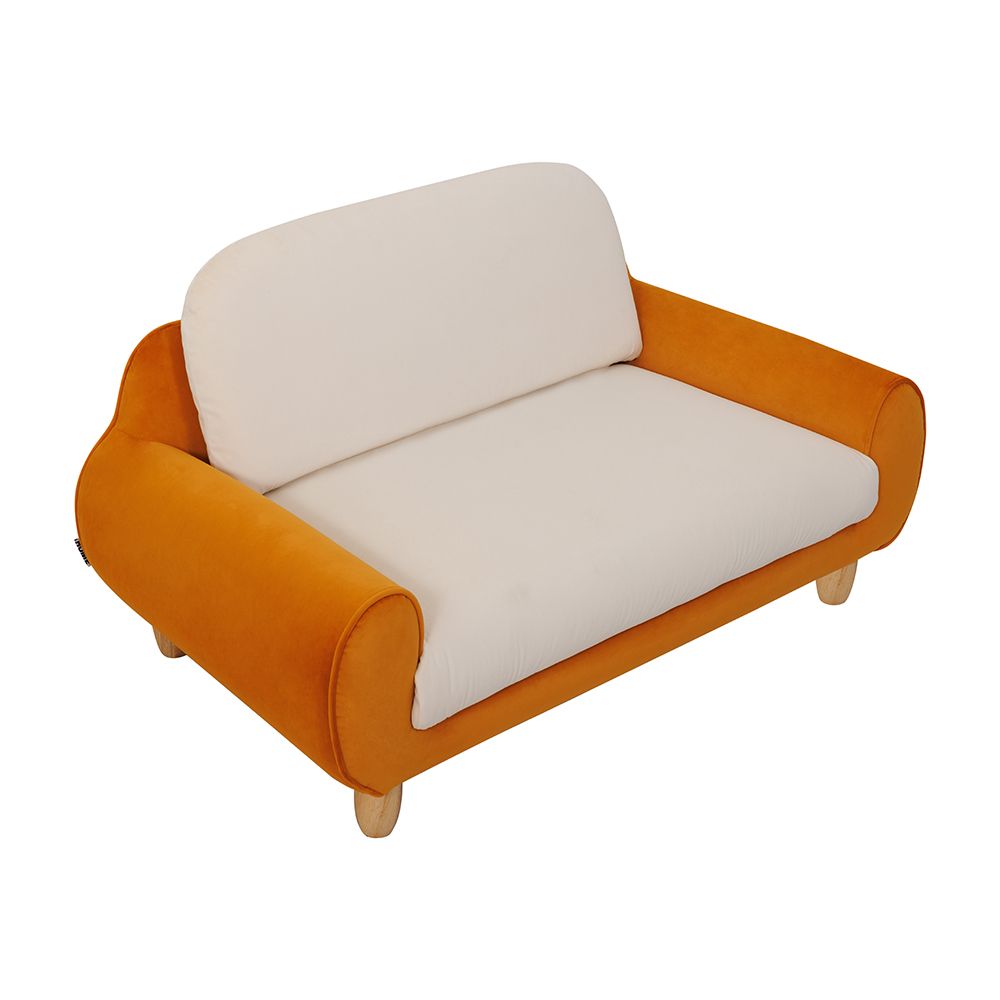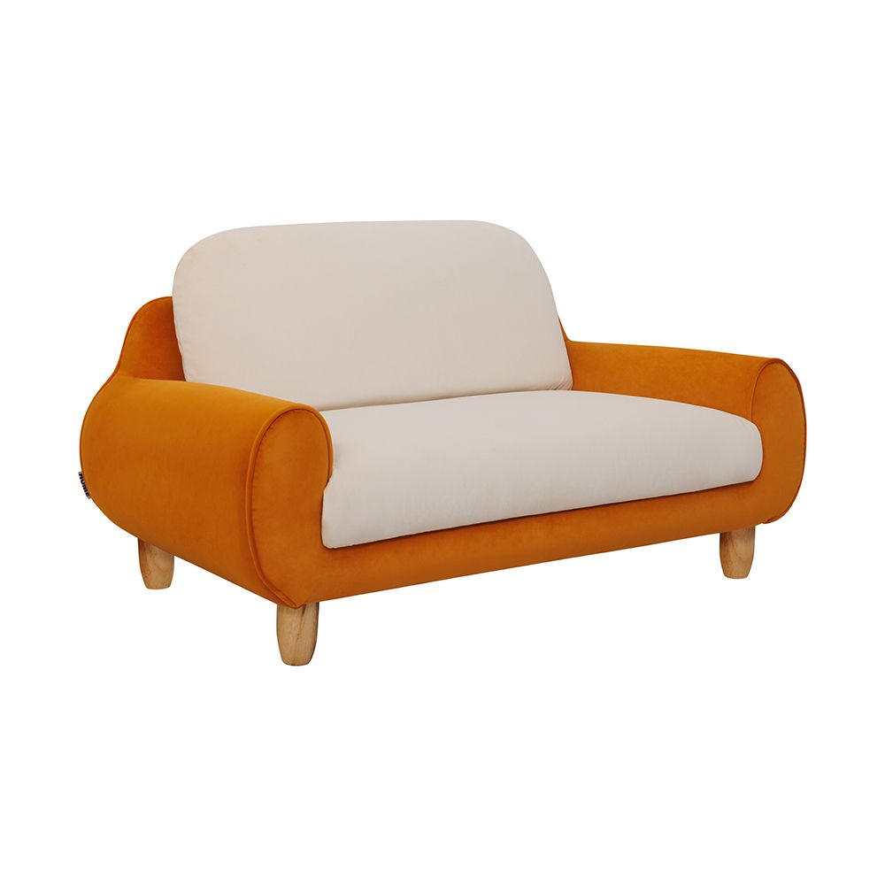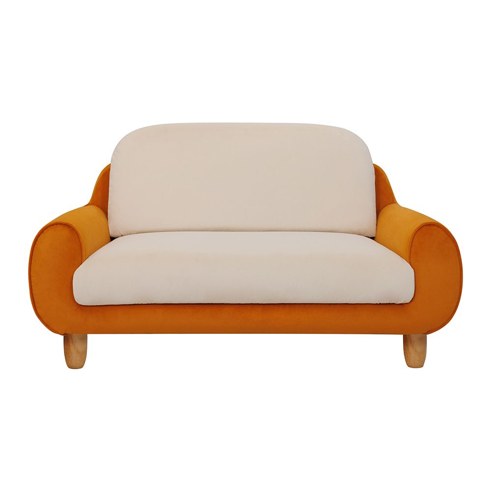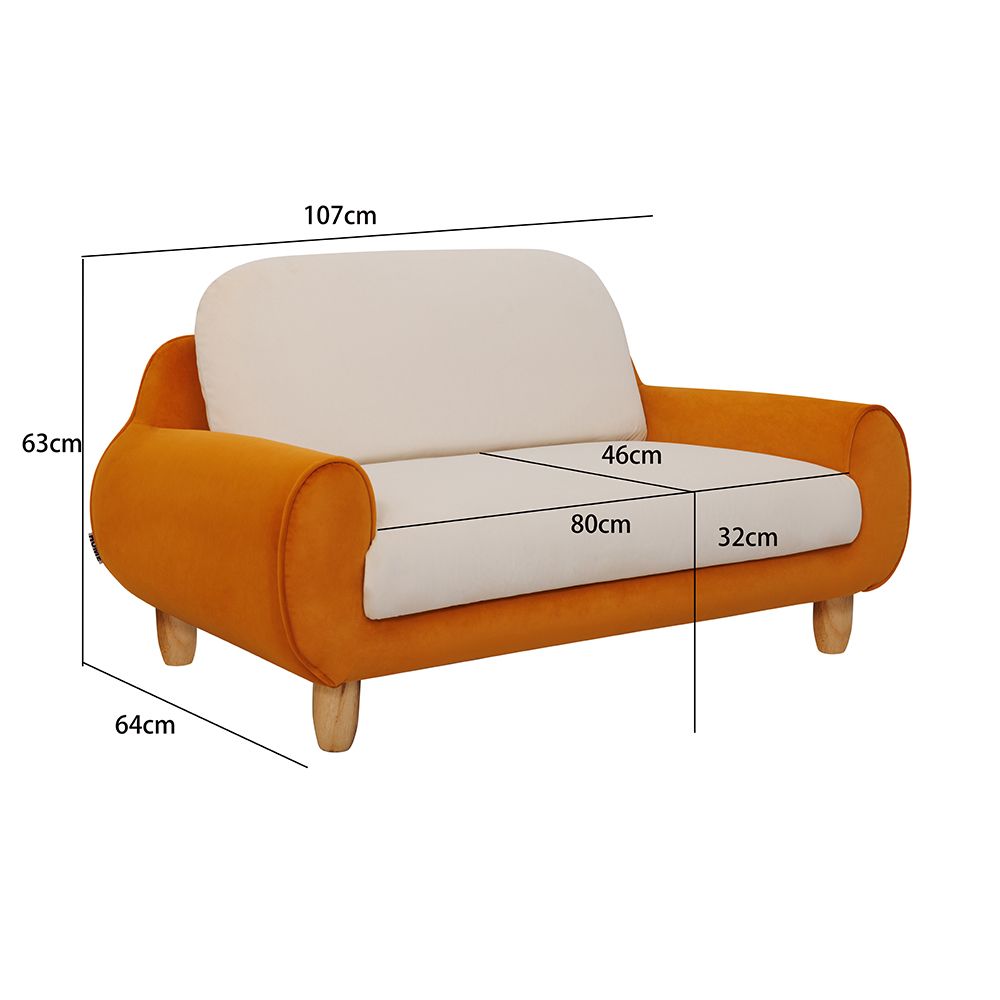 Vibrant 2 Seater Velvet Kids Sofa-Light Beige & Peach