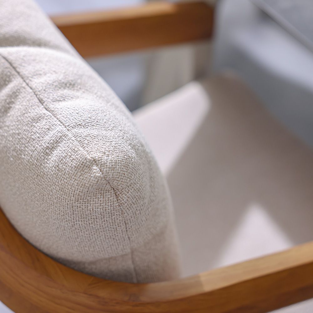 Each chair is wrapped in rich beige olefin fabric upholstery, chosen for its soft hand-feel, fade-resistance, and weather resilience.