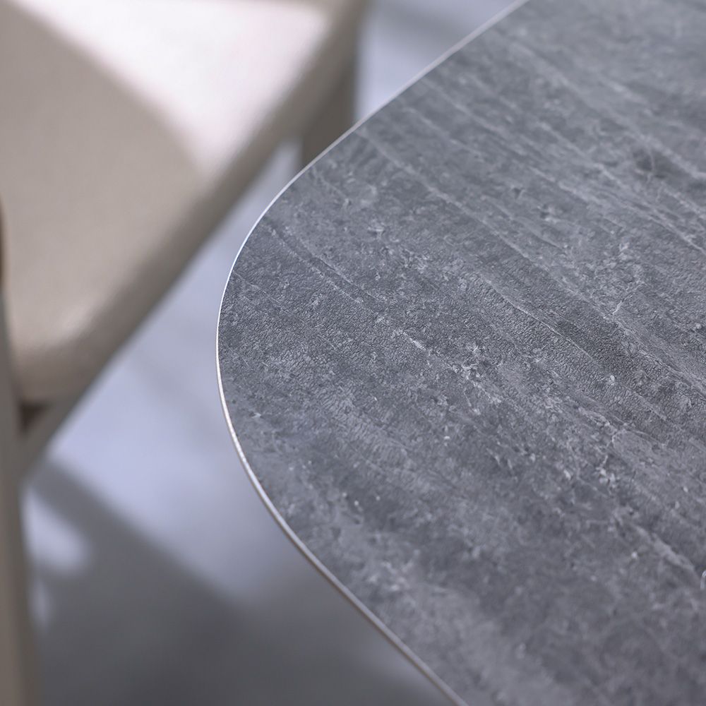 At the heart of the set, a commanding dining table anchors the scene with its dark grey stone grain top.