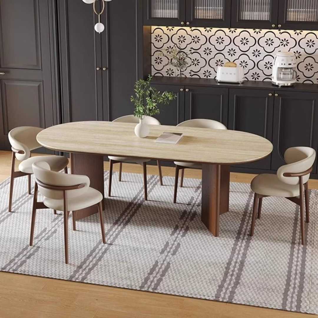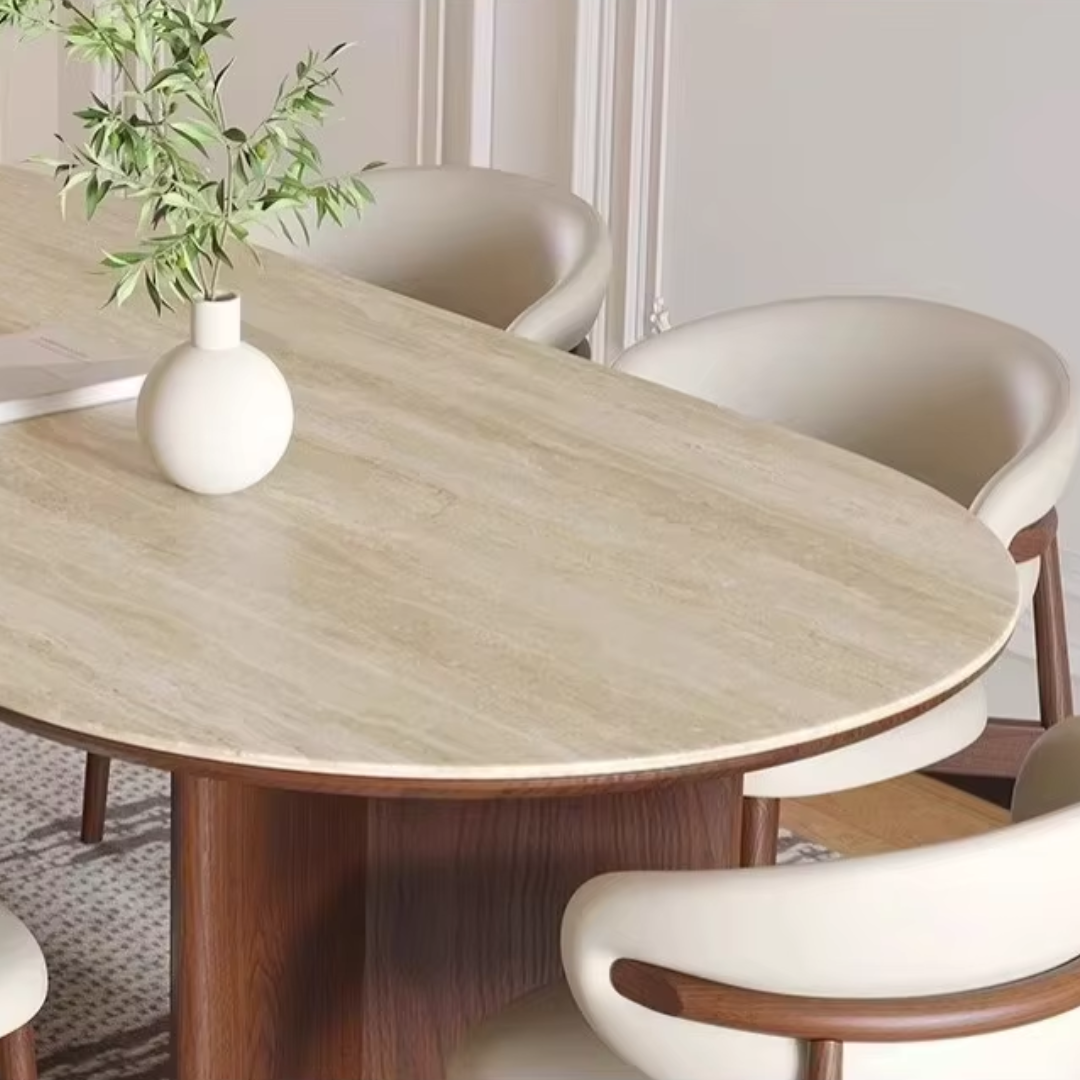 Vienna Harmony 6 Seater Dining Table Set with Limestone Top (Off-White)