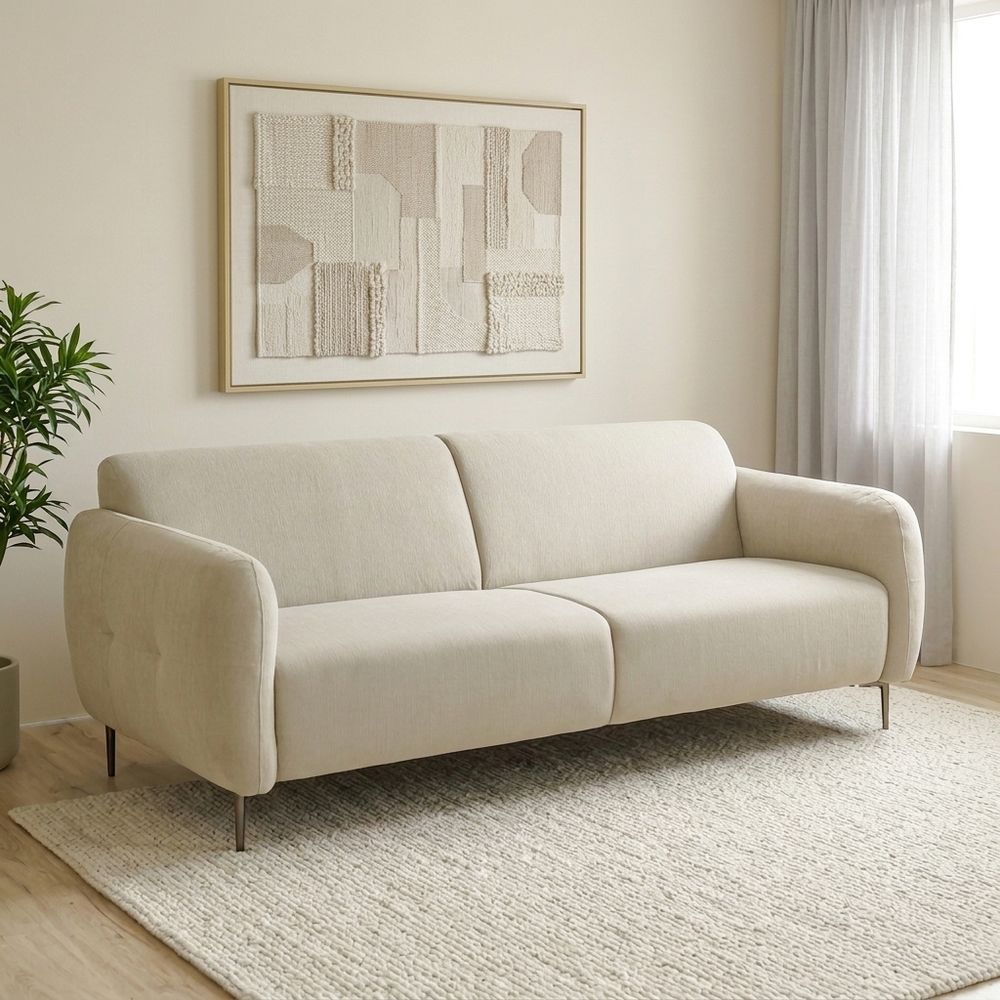 Wrapped in premium taupe beige fabric, the Waver sofa harmonizes effortlessly with both minimalist and modern interiors.