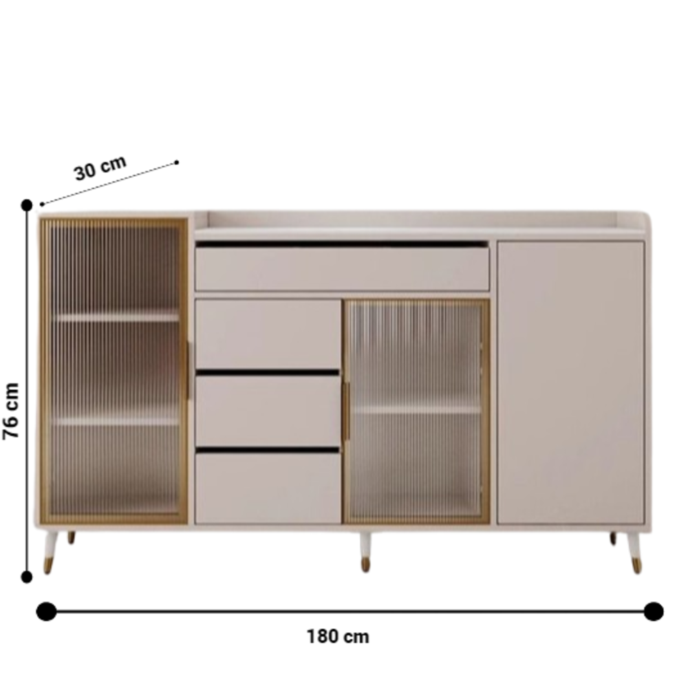 This sleek sideboard buffet cupboard cabinet combines style and practicality to create the perfect storage and display solution for your home. Whether you're showcasing your fine china, glass, storing dining essentials, or adding a statement piece to your living room, this cabinet does it all with flair.