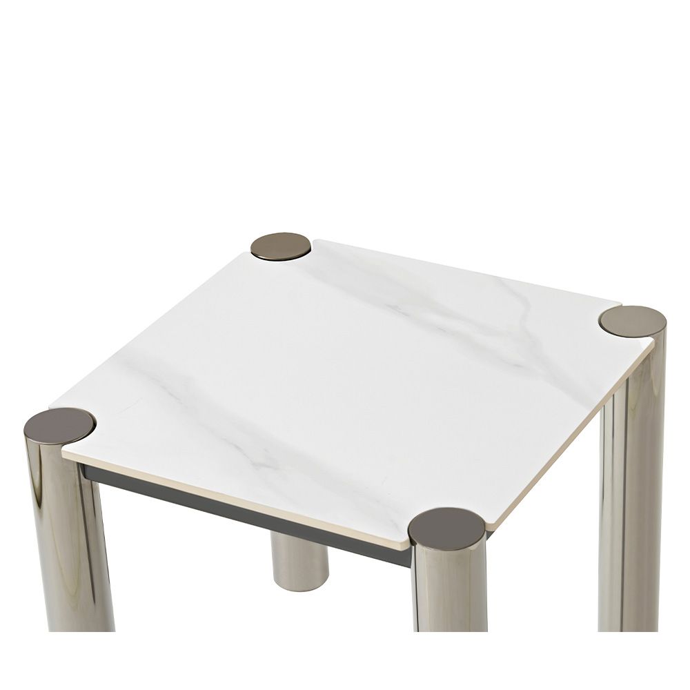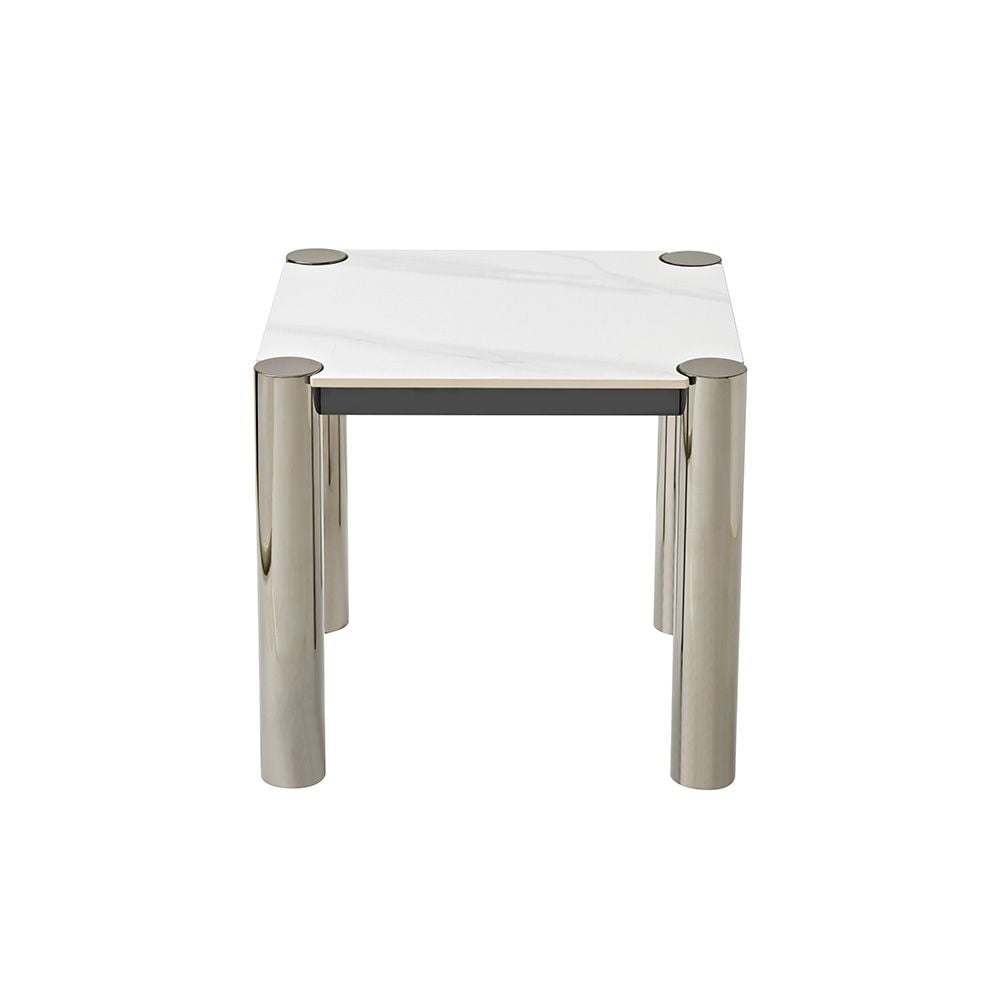William Sintered Stone Top End Table - White/Nickel Black