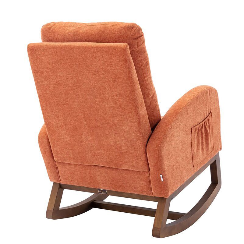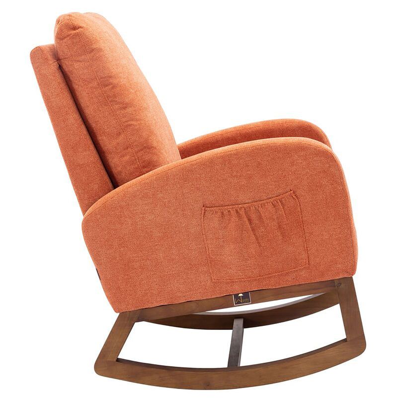 Holland fabric Rocking Chair Comfortable Living Room Rocker Lounge Armchair with Solid Wood Base High-Back Porch Rocker Nursery Rocker w/Side Storage Pocket, This indoor rocking chair with a thick cushion seat and back provides you incredibly soft sitting experience and relieve your fatigue. This rocking chair is a great addition to any room in your home, especially a living room bedroom, or nursery.