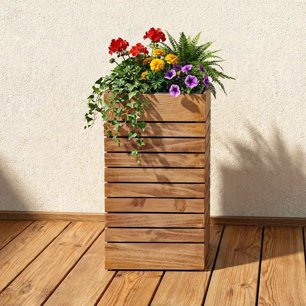 Small Planter With 1 Pot, Treated Pine Wood, Paint Is Stained With Uv Protection Topcoats.