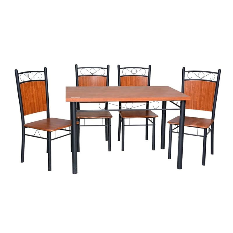 Wooden Steel Metal Dining Table Chairs Set Modern Dinner Desk 4-Chairs for Dining Room Kitchen Lounge Adjustable Table Comfortable chairs, Cafeteria Set Chairs Table DT854
