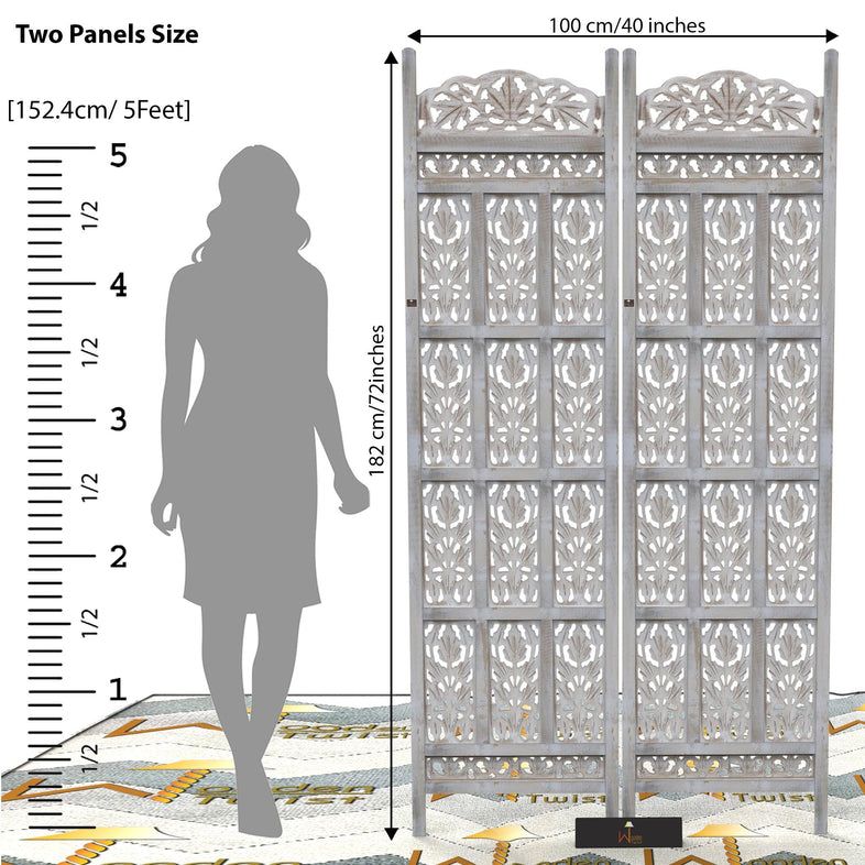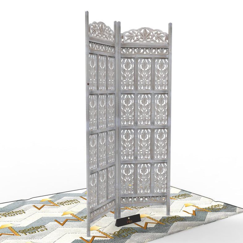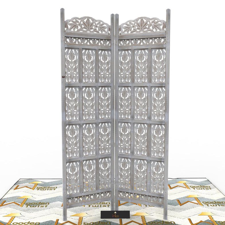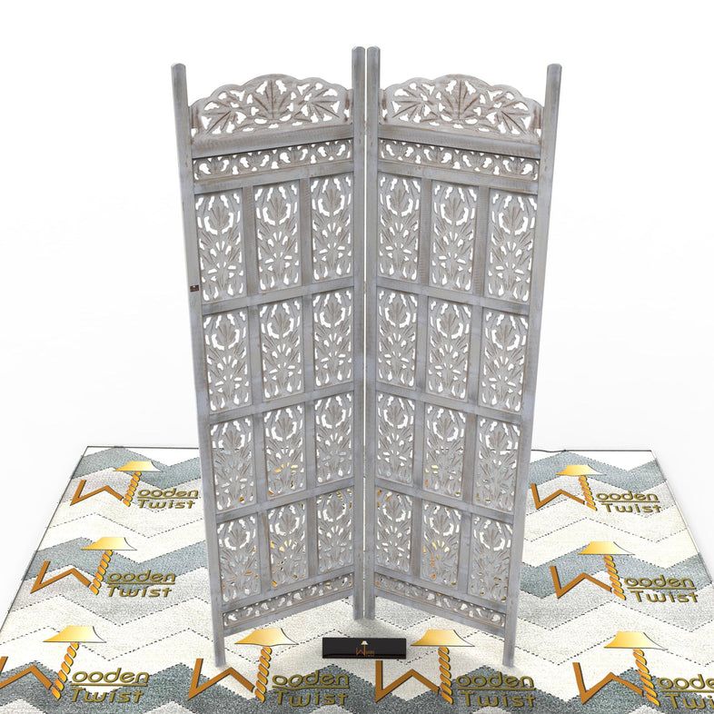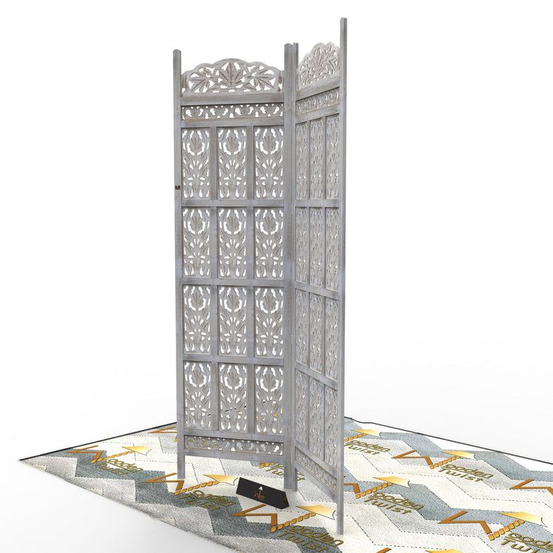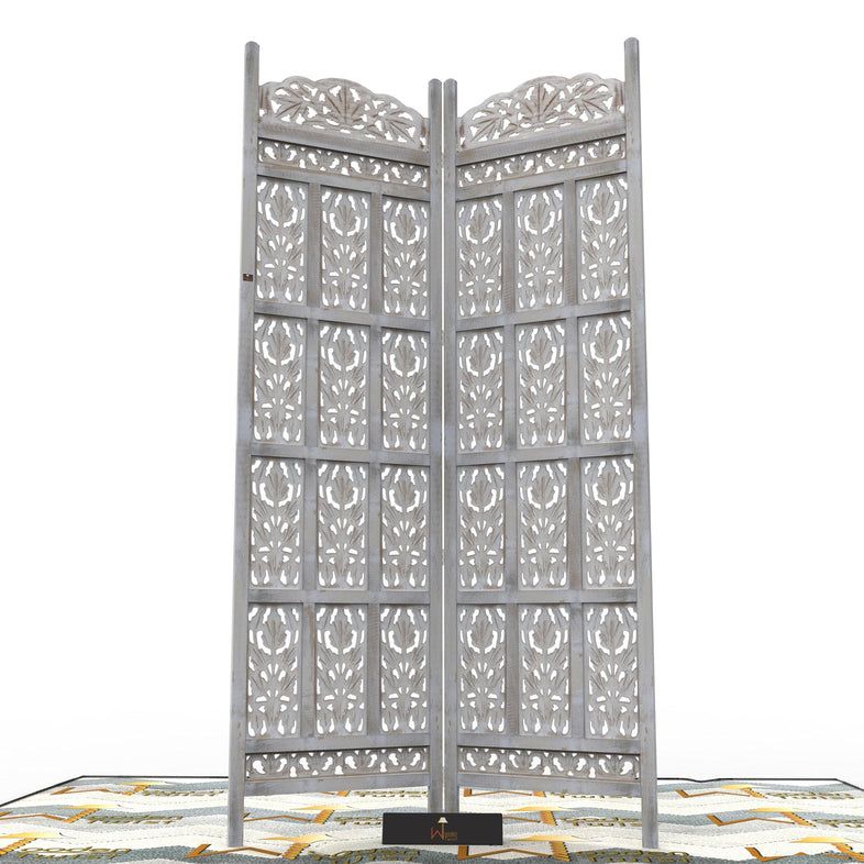 Carved Wood Room Divider Screen Antique White Wash Rustic Finish