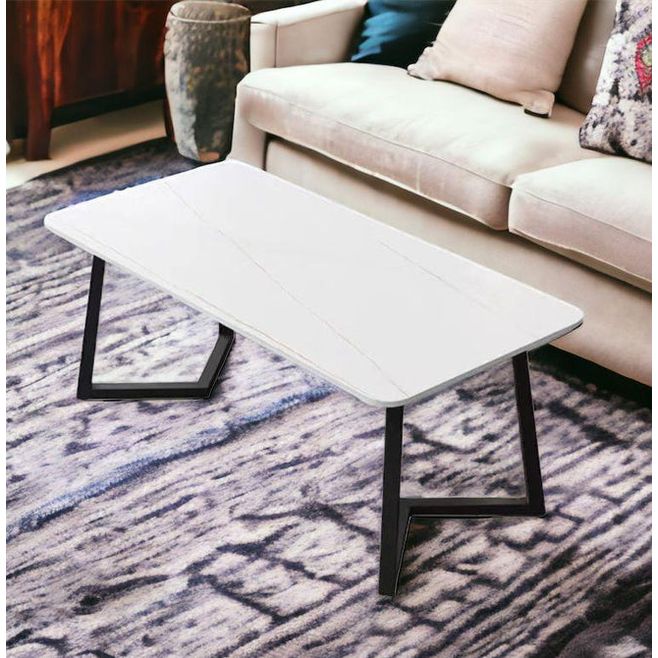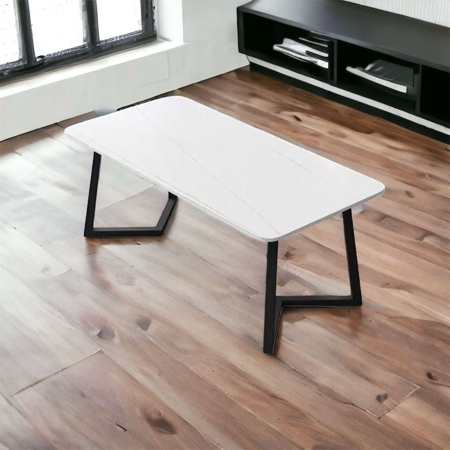 Modern Designer Rectangular Marble Top Metalic Legs Coffee Table For Living Room
