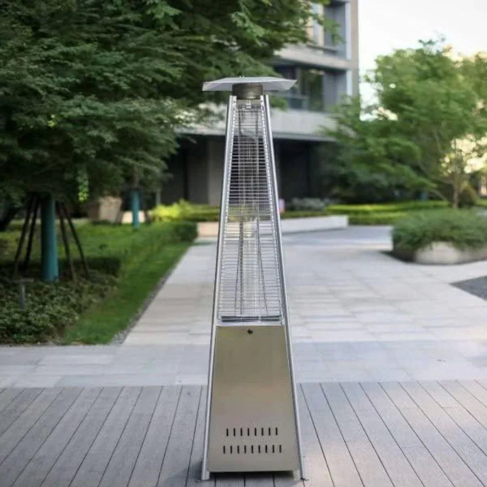 Wooden Twist Pyramid Gas Heater with Wheels, Outdoor Heating Solution with Adjustable Flame (Silver)