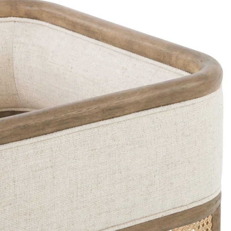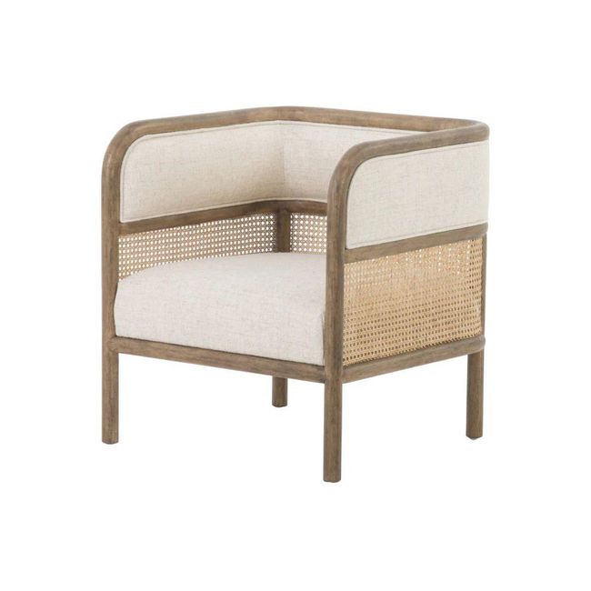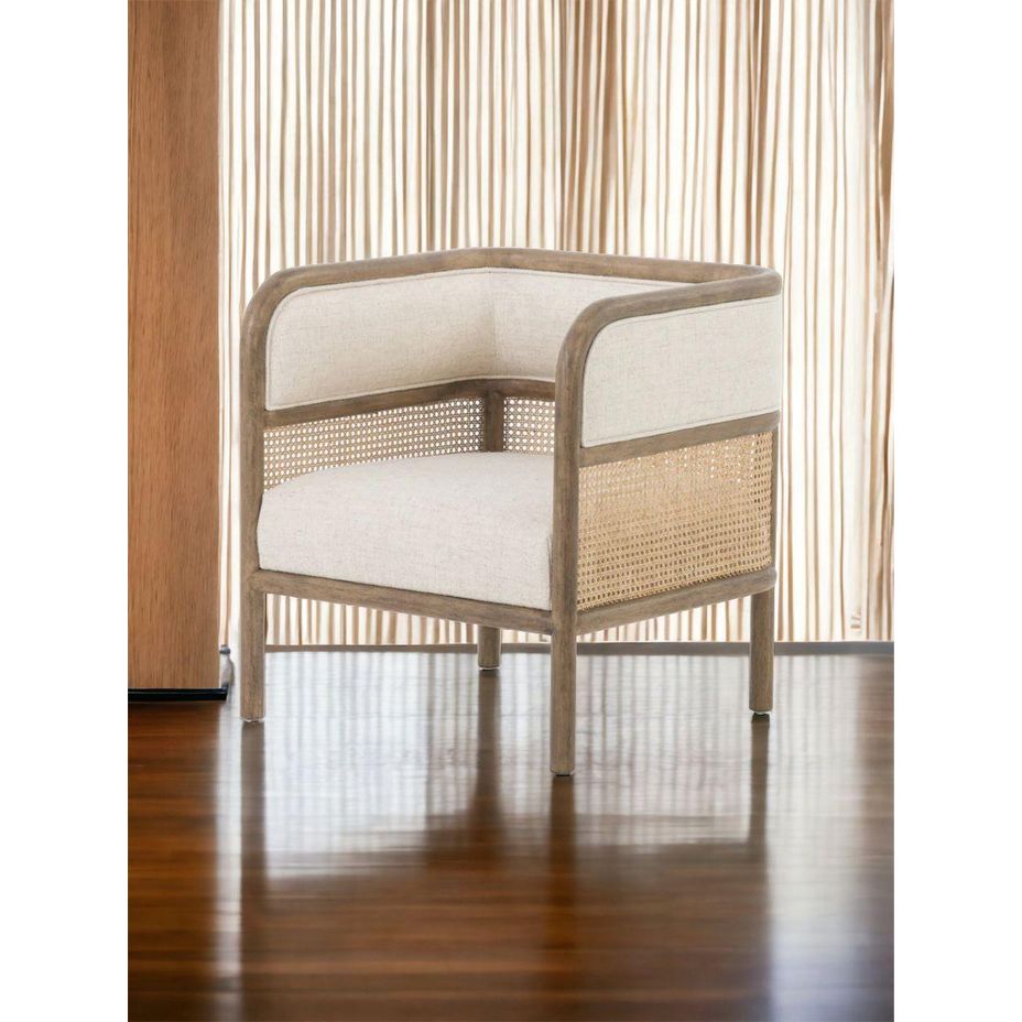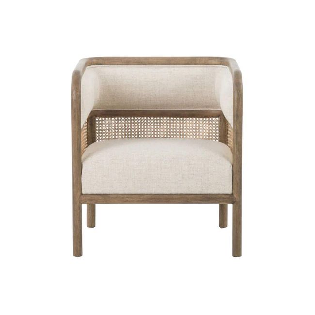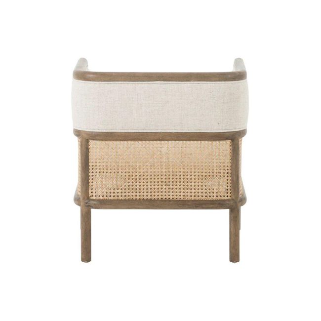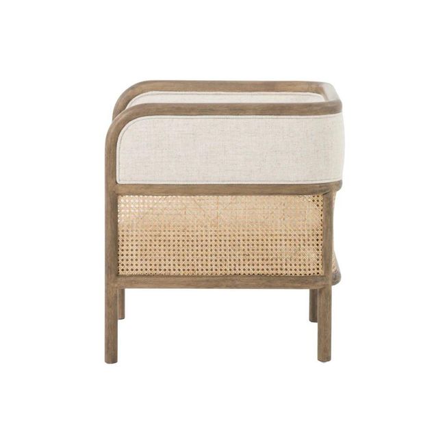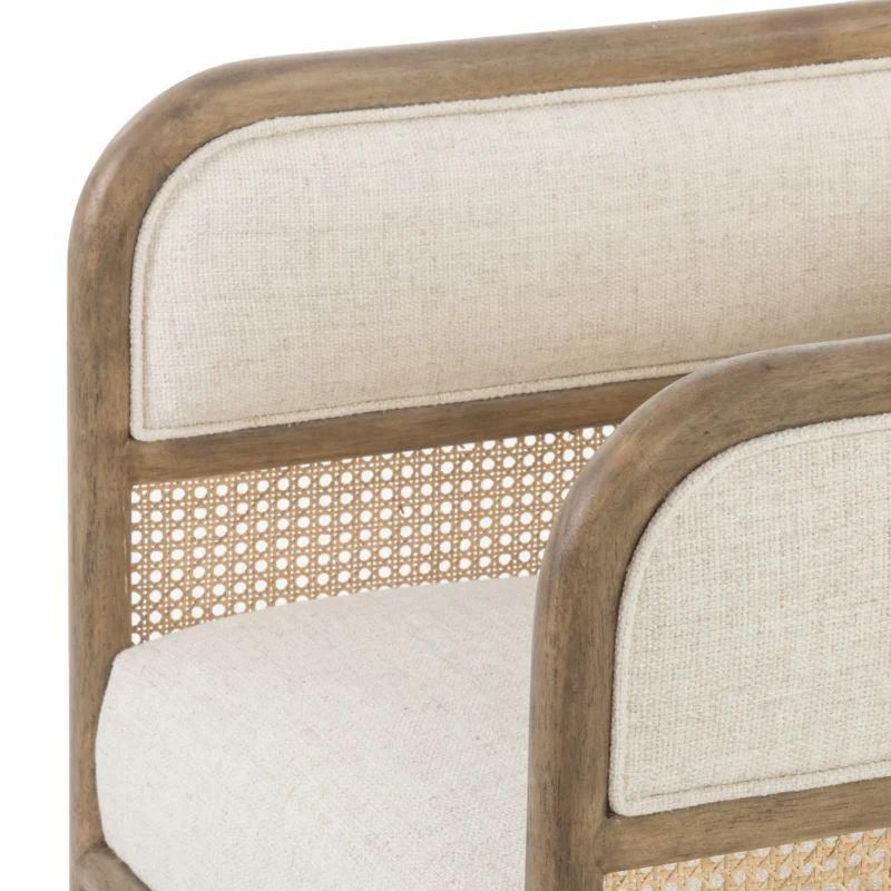 Teak Wood Single Seater Sofa with Curved Framing and Natural Cane Rattan Paneling