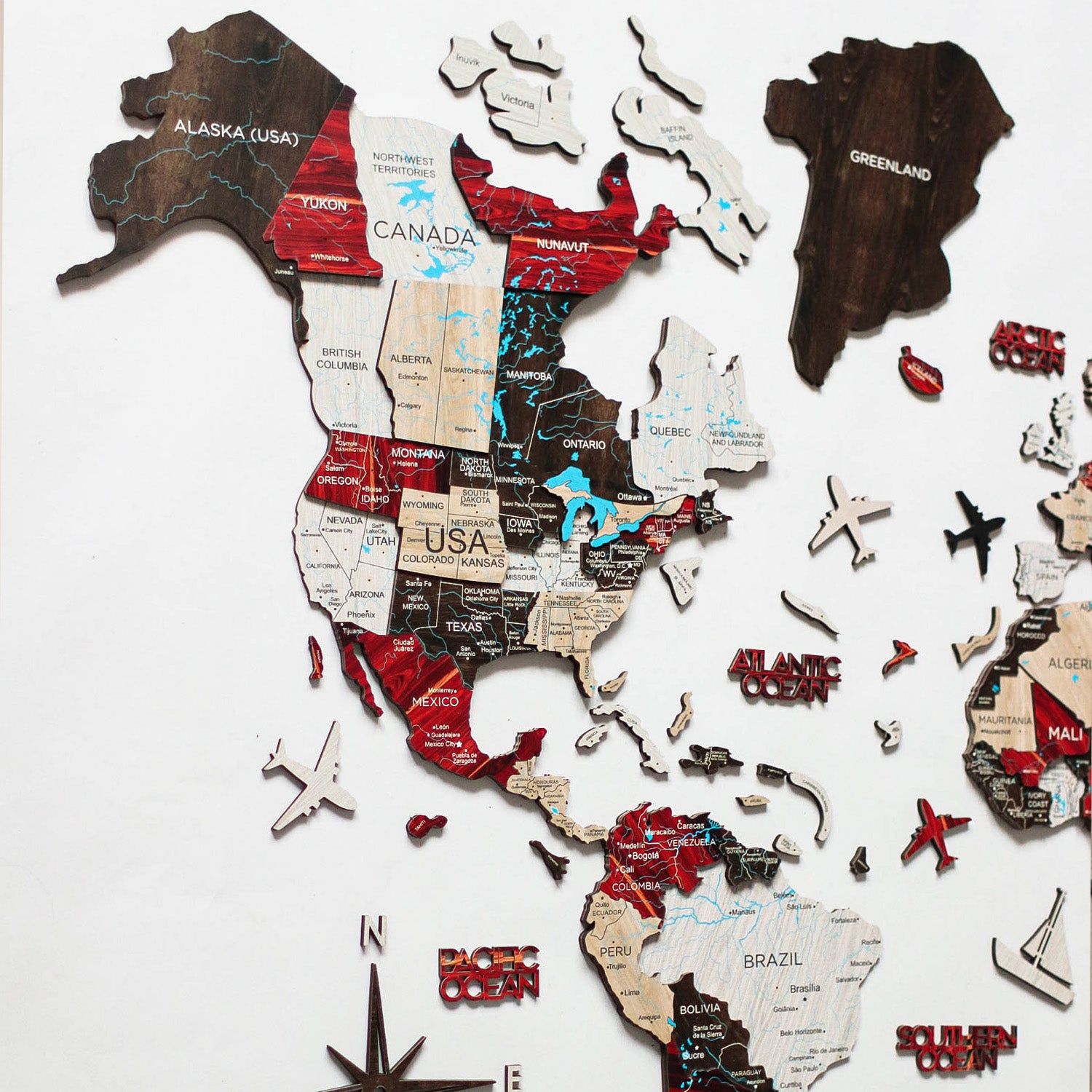 Wooden World Map - Indie | M (100 x 60cm)