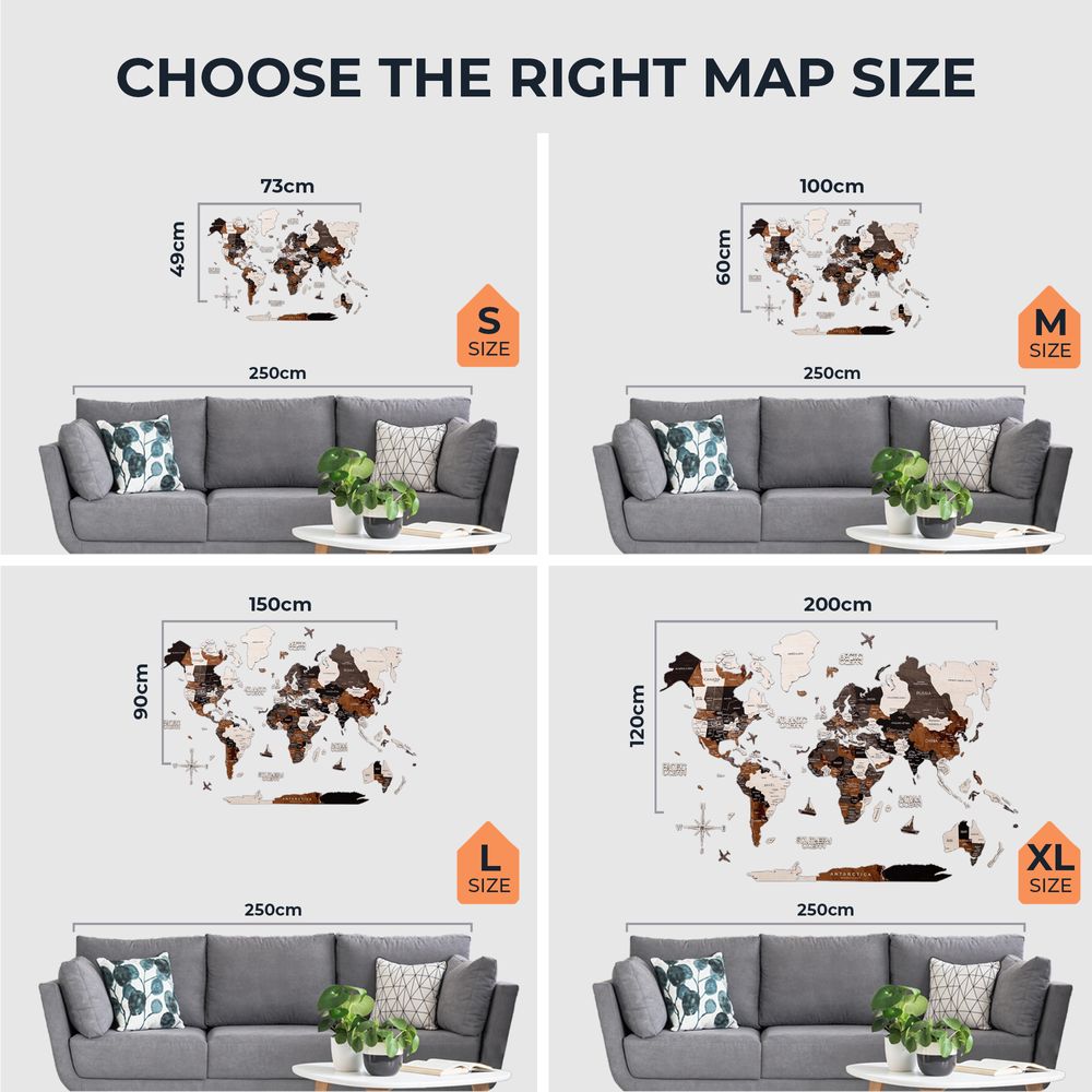 Wooden World Map - Wood tone - S (73 x 49cm)
