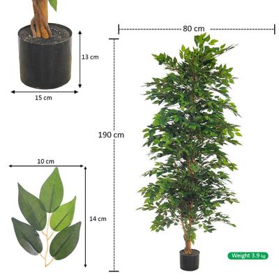 Durable, Waterproof Pot: The sturdy pot ensures this artificial ficus is ready for both indoor and outdoor environments, resisting wear and tear while maintaining its attractive look. It's perfect for enhancing living rooms, offices, patios, gardens, or any space in need of greenery.