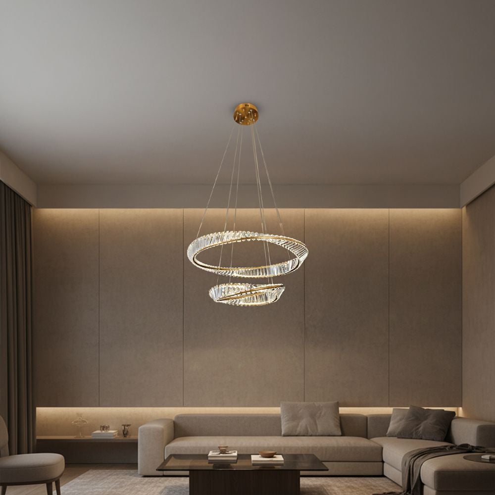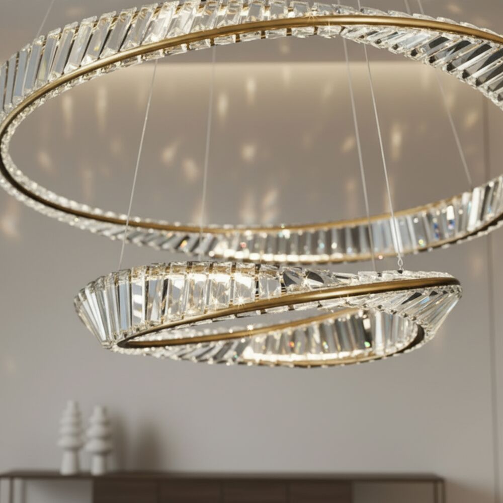 Zamara Modern Crystal Chandelier With 3 Color Dimmable Light 60+40 Cm -Gold