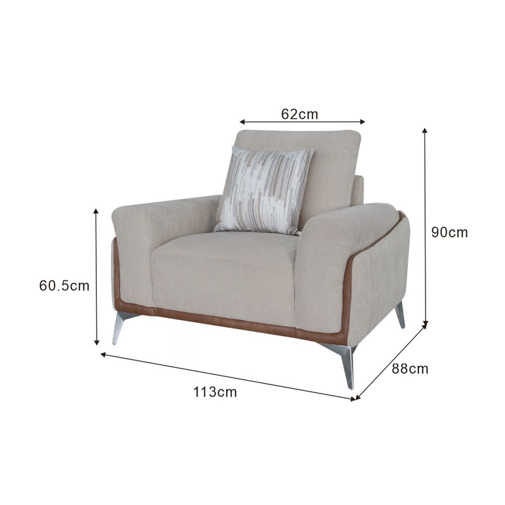 صور المنتج Furniqo 1 Seater Fabric Sofa - Light Khaki تستخدم لأغراض التوضيح فقط. وقد يختلف لون المنتج قليلاً بسبب إضاءة التصوير أو إعدادات الشاشة.