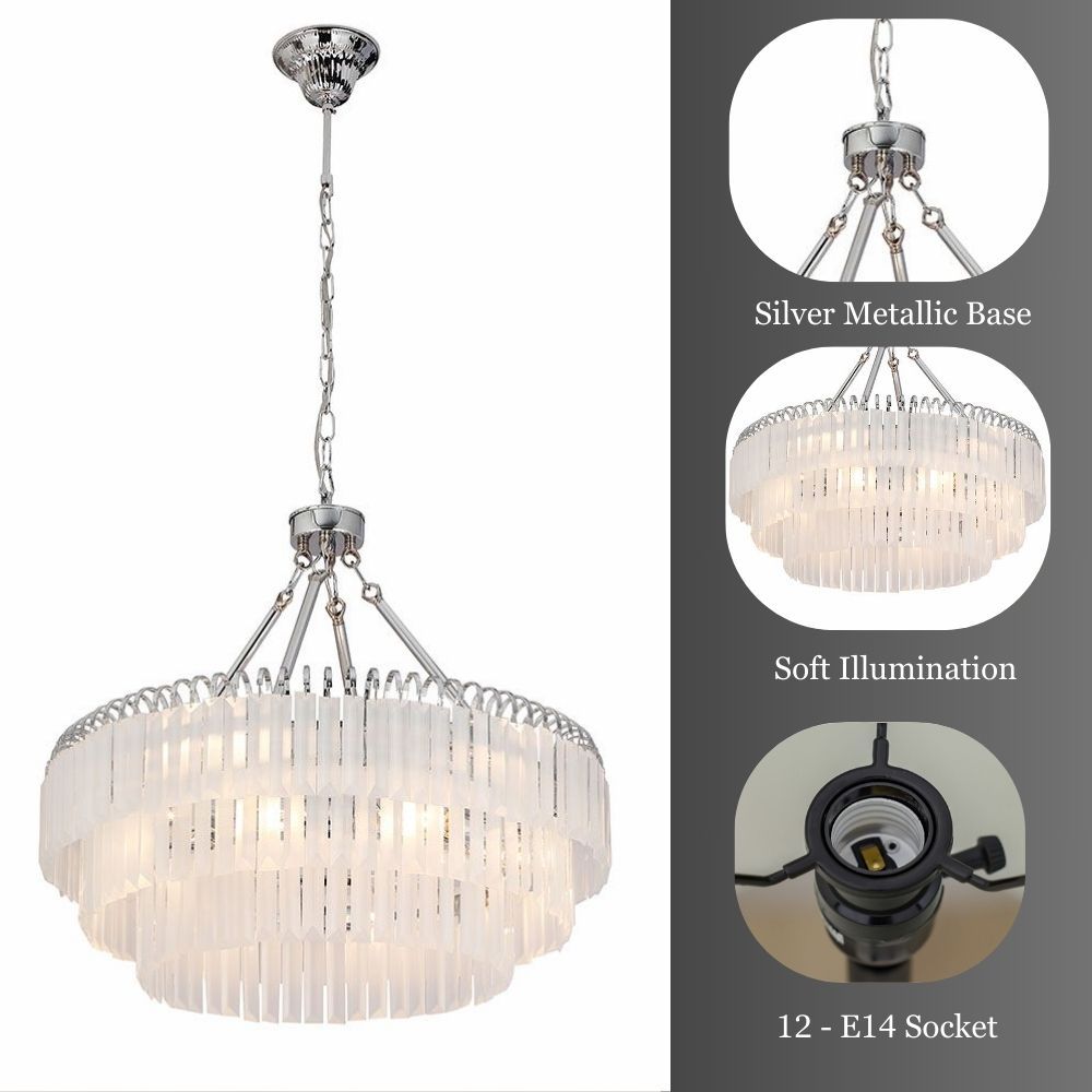 ثريا كارا - معدن مطلي + زجاج - أبيض/كروم - قطر 60 × عرض 48 × ارتفاع 120 سم