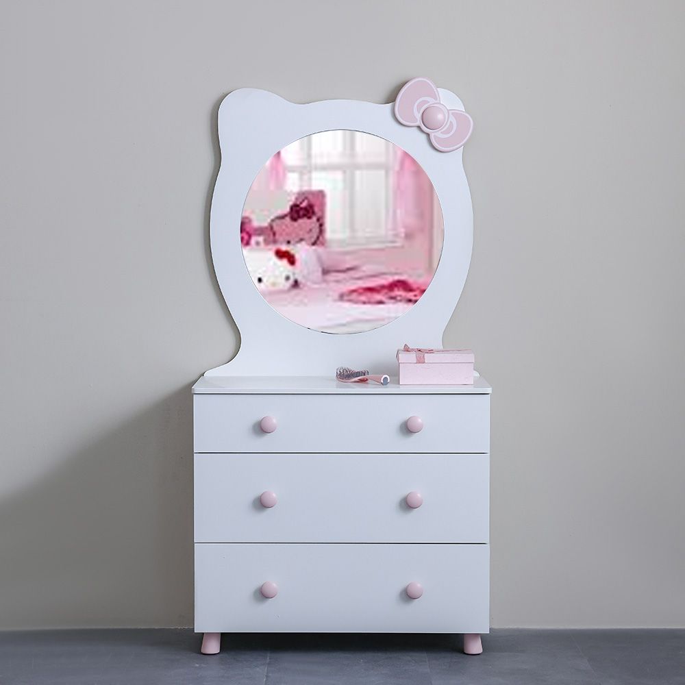 Kitty 120x200 Bedroom Set With Upholstered Headboard-White+Pink