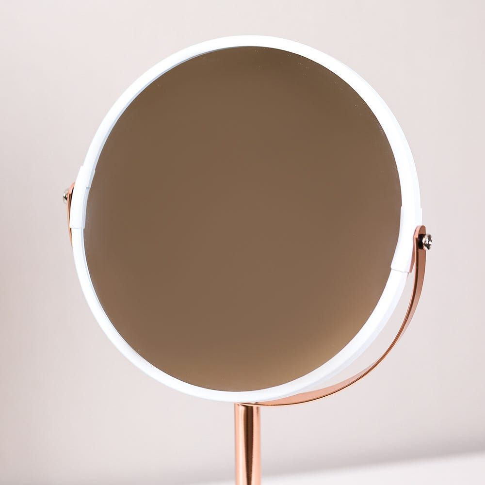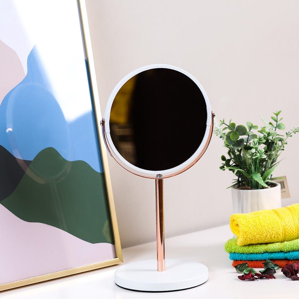 The product Cara Round Mirror White, Rose Gold 18X15X34.5CM CB02188-008 images have props used for illustrative purposes. Product Color may vary slightly due to photographic lighting or your screen settings.