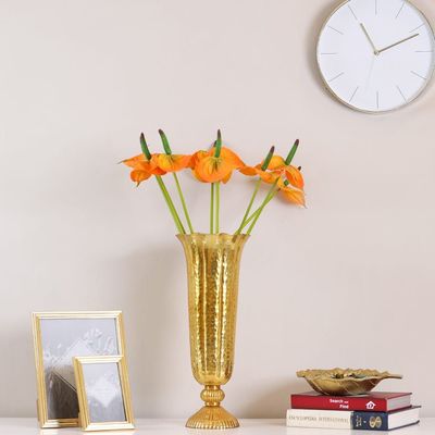 The product Decimus Textured Vase With Base Large 19X19X44 cm Gold VDAL-83 images have props used for illustrative purposes. Product Color may vary slightly due to photographic lighting or your screen settings.