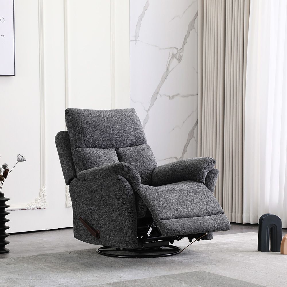 Ezmir Manual Fabric Recliner W/ Glider + Swivel -Grey