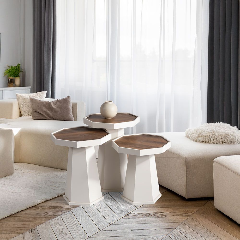 Pyramid Set of 3 Nest of Table - Walnut / Moonstone