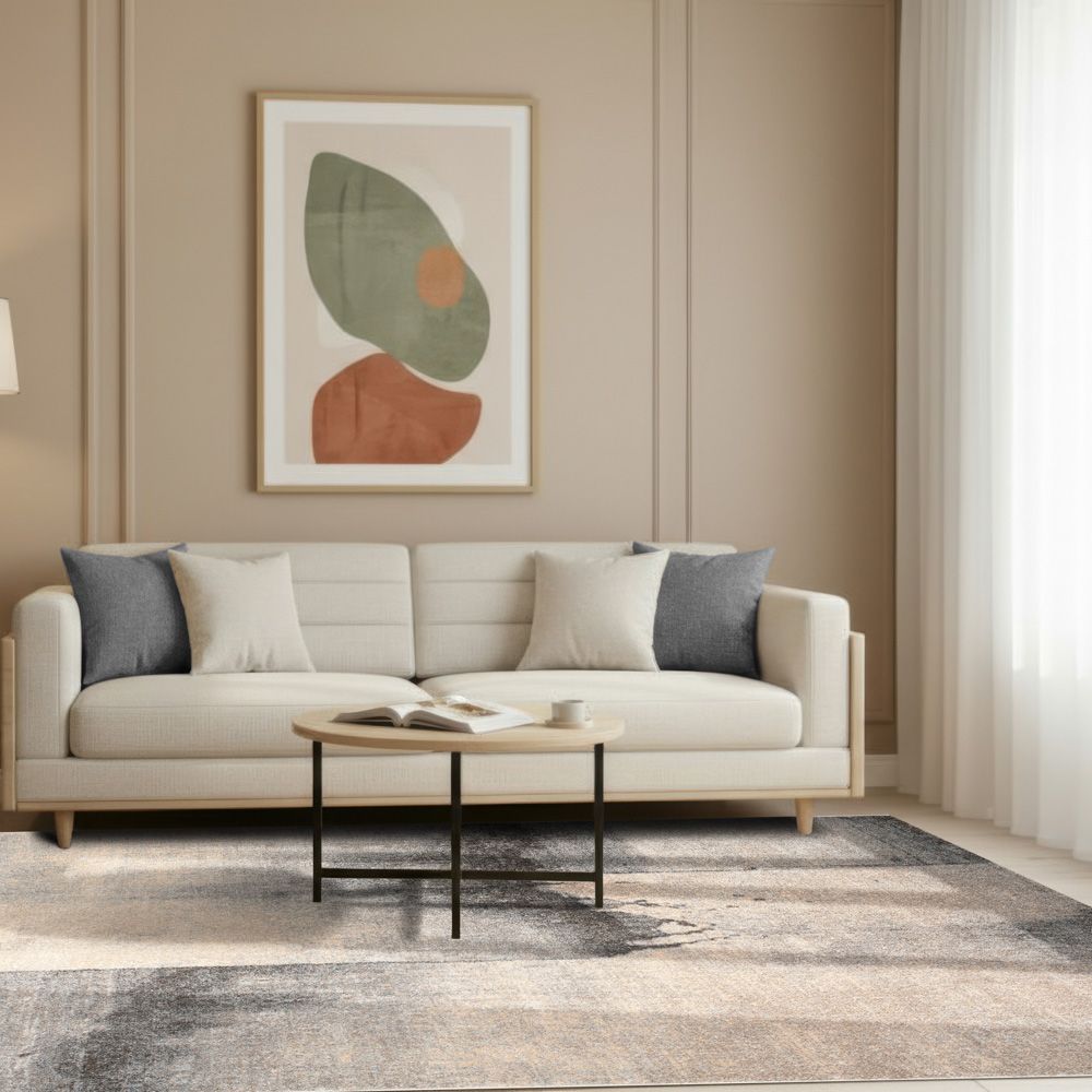 Airing and vacuuming will help to eliminate the smell that Rug can have when its new.