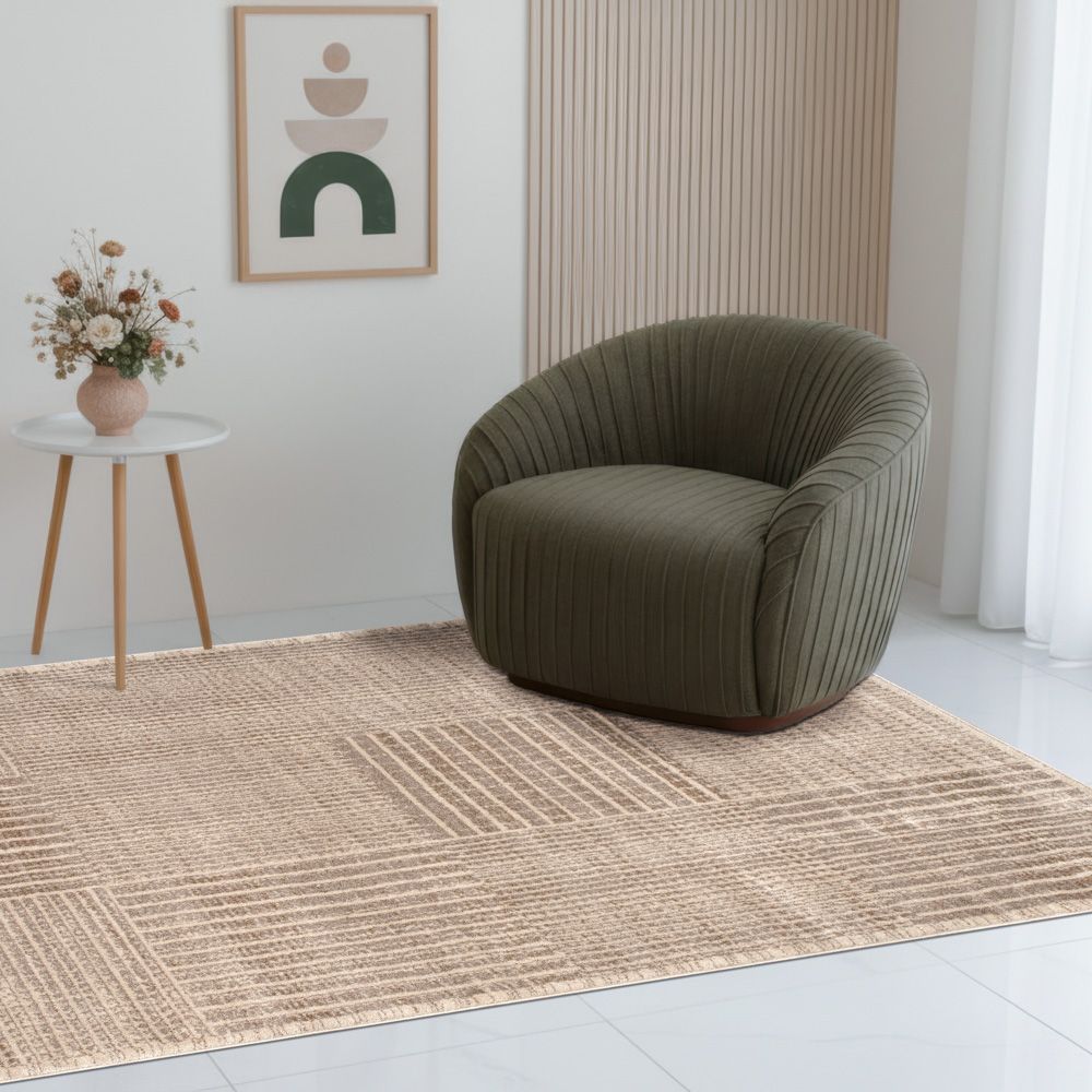 Airing and vacuuming will help to eliminate the smell that Rug can have when its new.