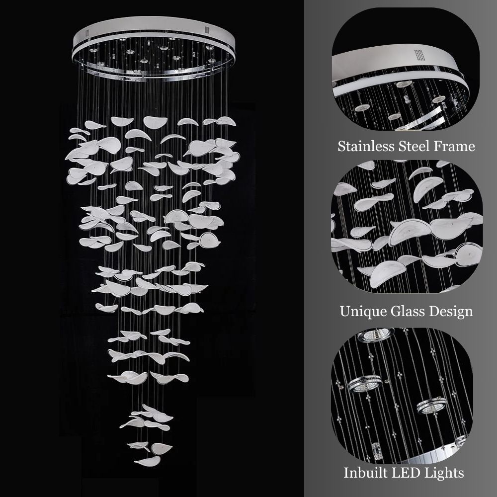 Seychelles LED Staircase Chandelier-Stainless Steel+Silicon+Glass White/Silver-136 W-D100xW100xH250 cm