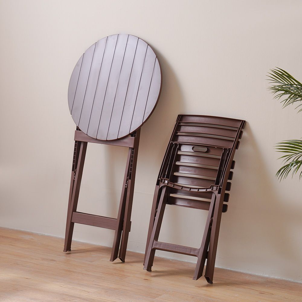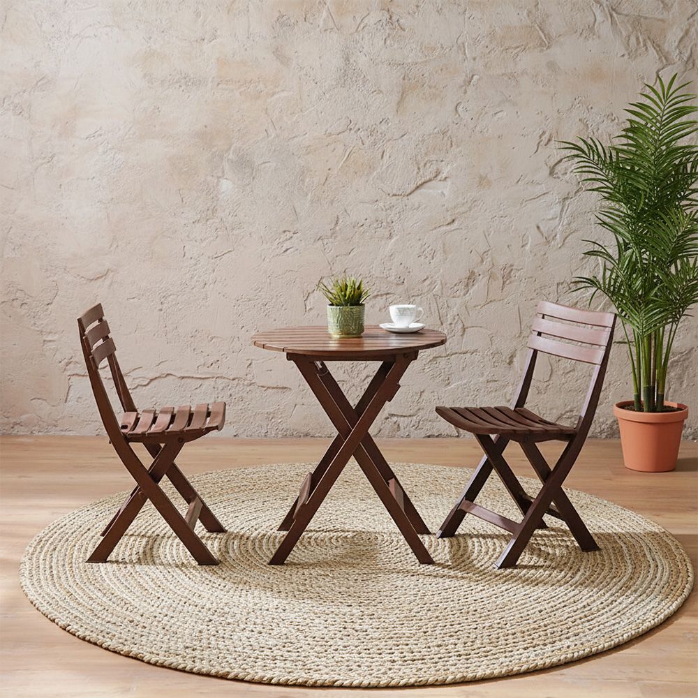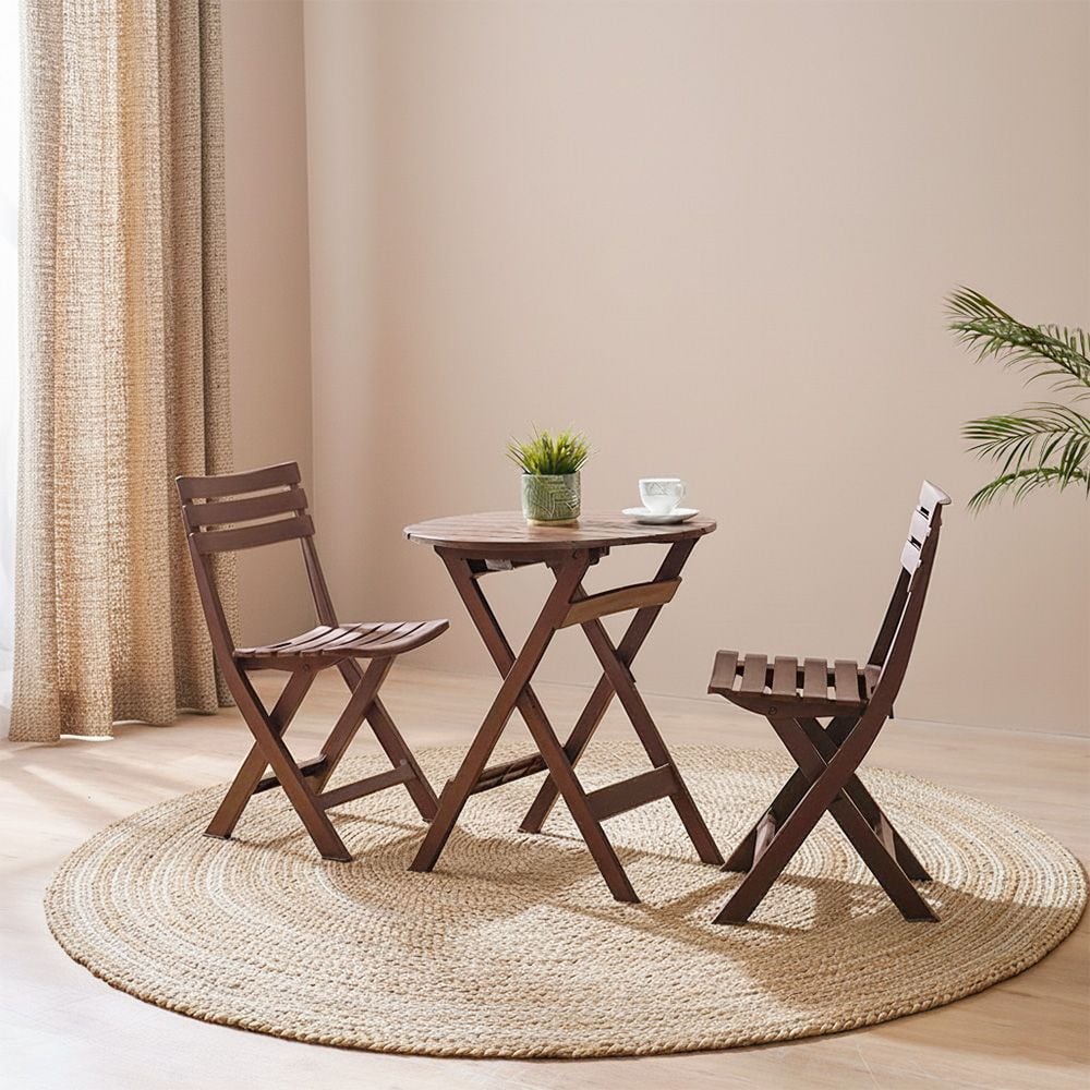 يتضمن هذا الطقم الأنيق كرسيين قابلين للطيّ بإتقان وطاولة أنيقة متناسقة.