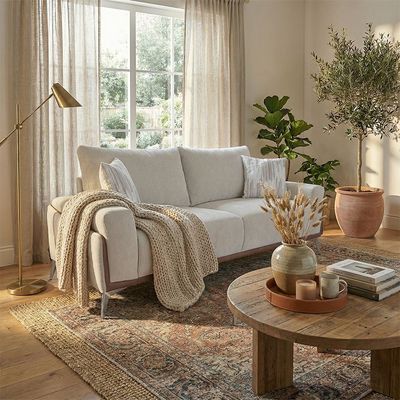 صور المنتج Furniqo 3 Seater Fabric Sofa - Light Khaki تستخدم لأغراض التوضيح فقط. وقد يختلف لون المنتج قليلاً بسبب إضاءة التصوير أو إعدادات الشاشة.