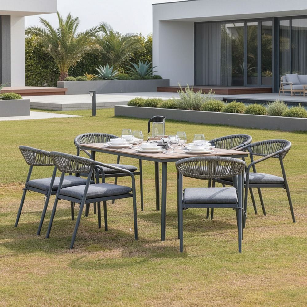 تناول الطعام تحت النجوم بأناقة وراحة مع طقم سفرة أماندا 1 + 6 مقاعد.