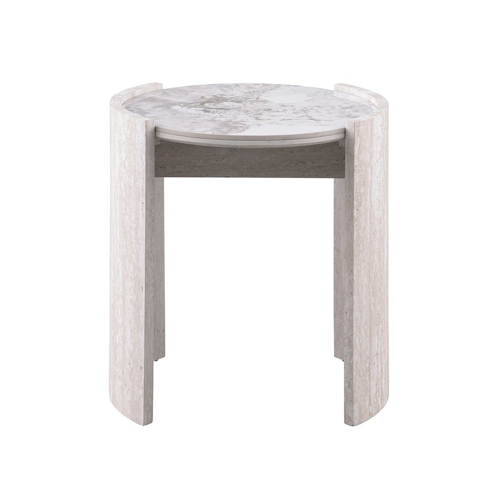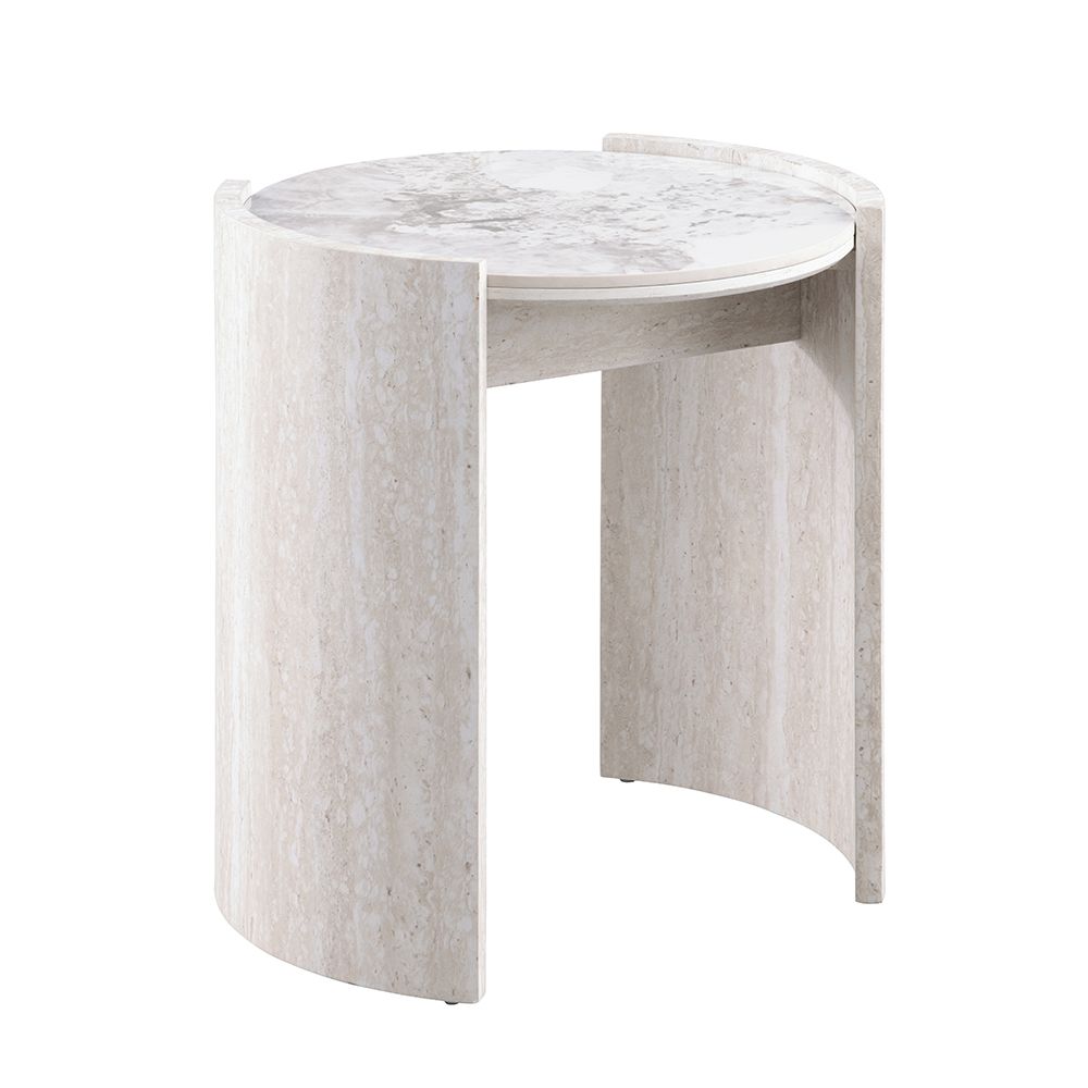 Astra Sintered Stone Top Round Endtable - White/Grey/Beige