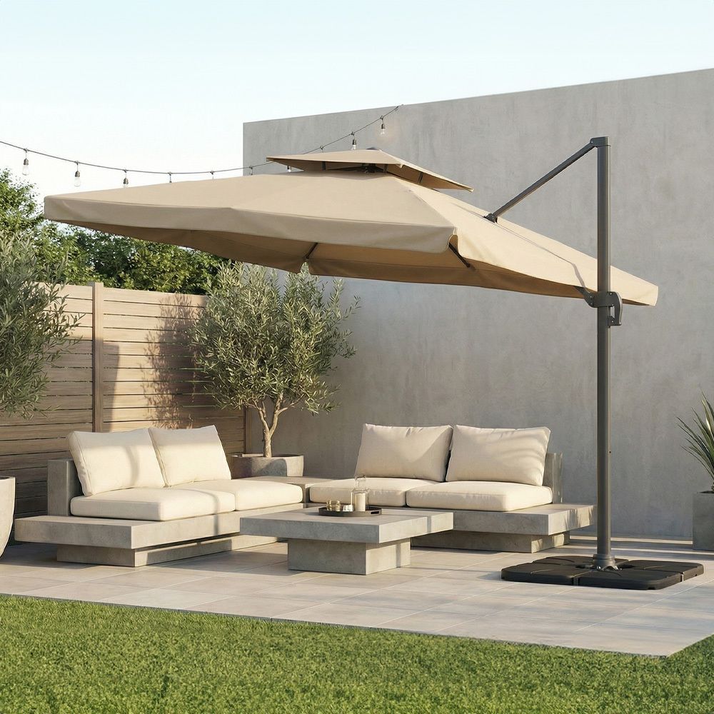 حسن شكل واحتك الخارجية مع مظلة اورا الجديدة بقاعدة ٣x٣ واستمتع بالراحة والأناقة المتناغمة. أجعل لحظاتك الخارجية ممتعة وجذابة بصريًا.