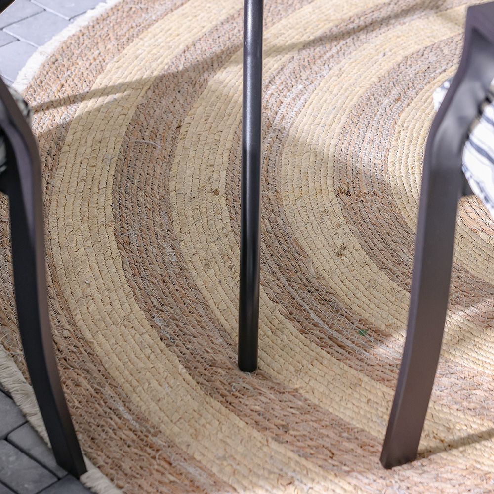تتميز الطاولة المركزية بفتحة مظلة عملية - ما عليك سوى إضافة ظلك المفضل، وستحصل على طقم مثالي من الفطور المتأخر إلى العشاء.