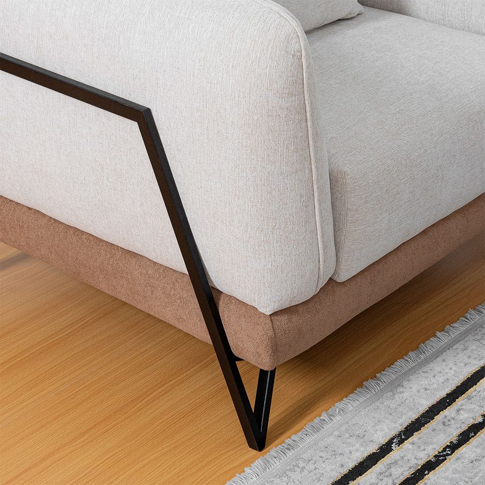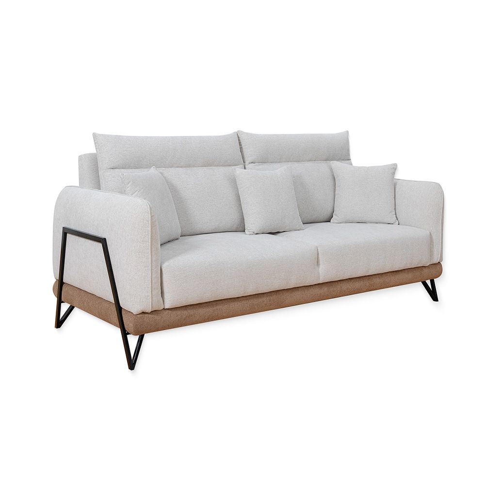 Mallorca 3 Seater Fabric Sofa - Light Grey/Brown