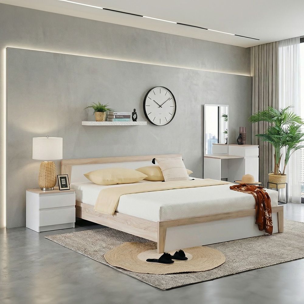مارتينا طقم سرير كينج 180X200 + تسريحة ومقعد - أبيض/سونوما أوك