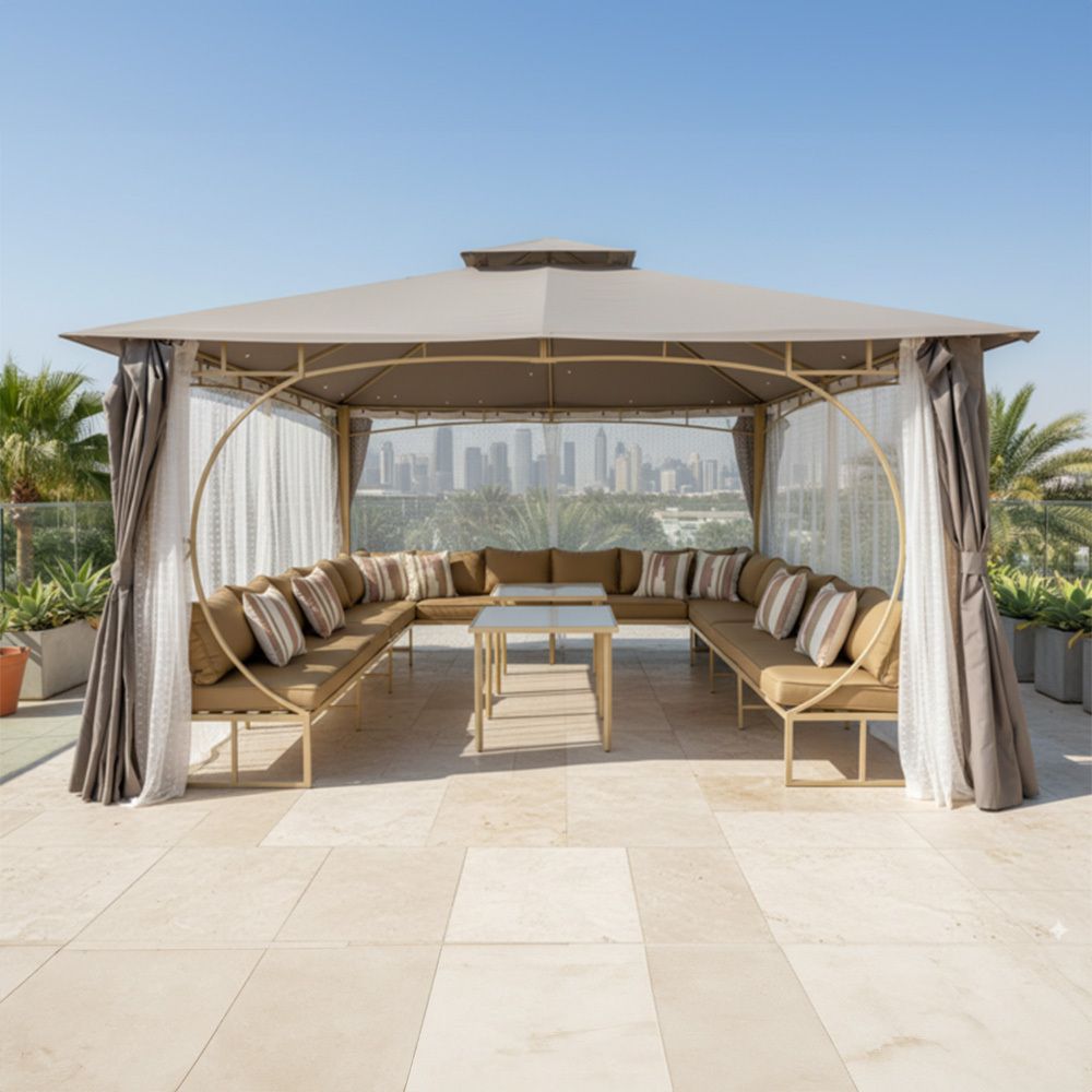 تقديم جازيبو ميراج الفاخرة مع مقاعد، إضافة رائعة لمساحتك الخارجية تجمع بين الراحة والأناقة والوظائف العملية.