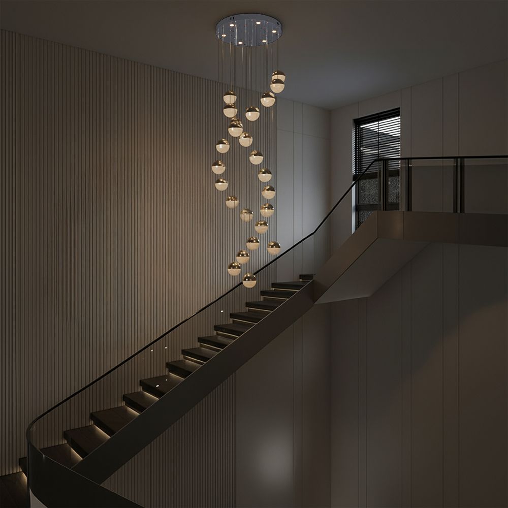 Solitare LED 25Pc Staircase Chandelier - 3 Color Dimmable 4m Adjustable Length -Smoke Grey